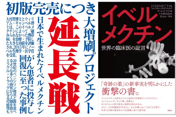 そこで大増刷へのご支援を引き続き仰ぎたく、プロジェクトの延長戦を始めさせていただきます。なおこれを機に11月初旬までにイベルメクチン情報を中心にしたオータナティブ医療メールマガジン『いべる』(隔月刊を予定)を発行し、リターンに加えたほか、フィリピン・マニラのアランランドリート分子栄養学クリニックへの診療旅行ご招待も加えました。