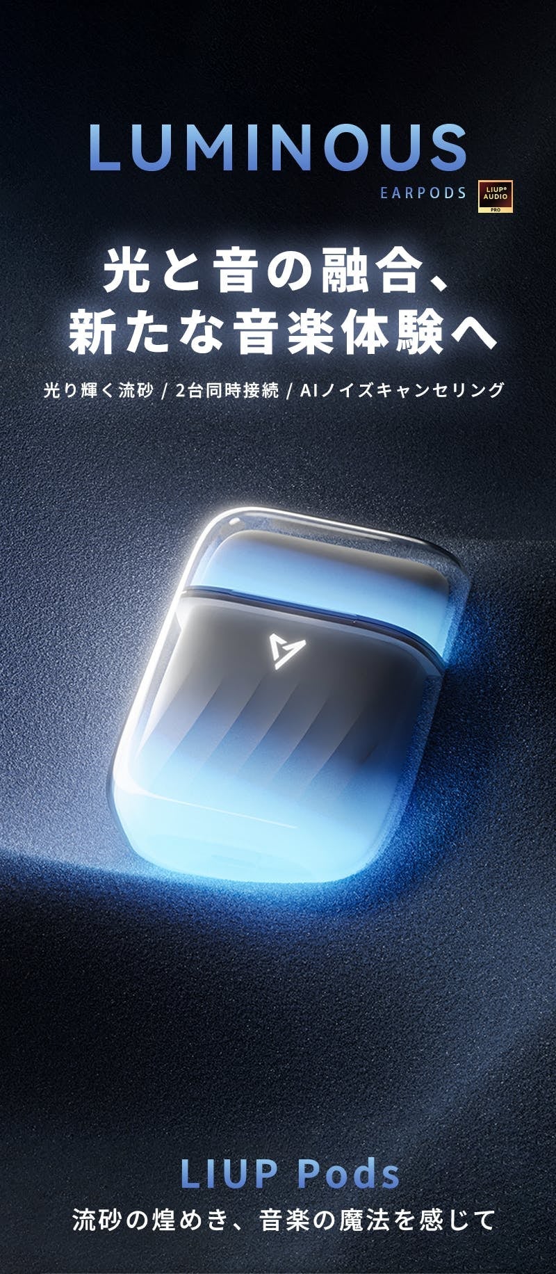 『光と音が織りなす、次世代の音楽体験』🎵✨ 流れる光で、音楽をもっと楽しく! ✨🎵私たちは音楽の楽しみ方を一新する革新的なワイヤレスイヤホンLUMIONS EARPODSを開発しました。砂時計のように美しく流れる光が、あなたの音楽体験を視覚的にも豊かにします。
