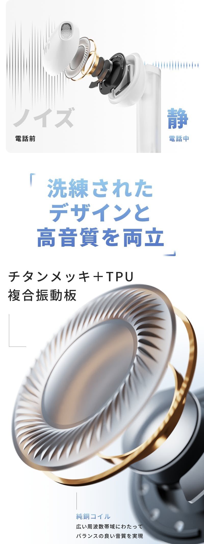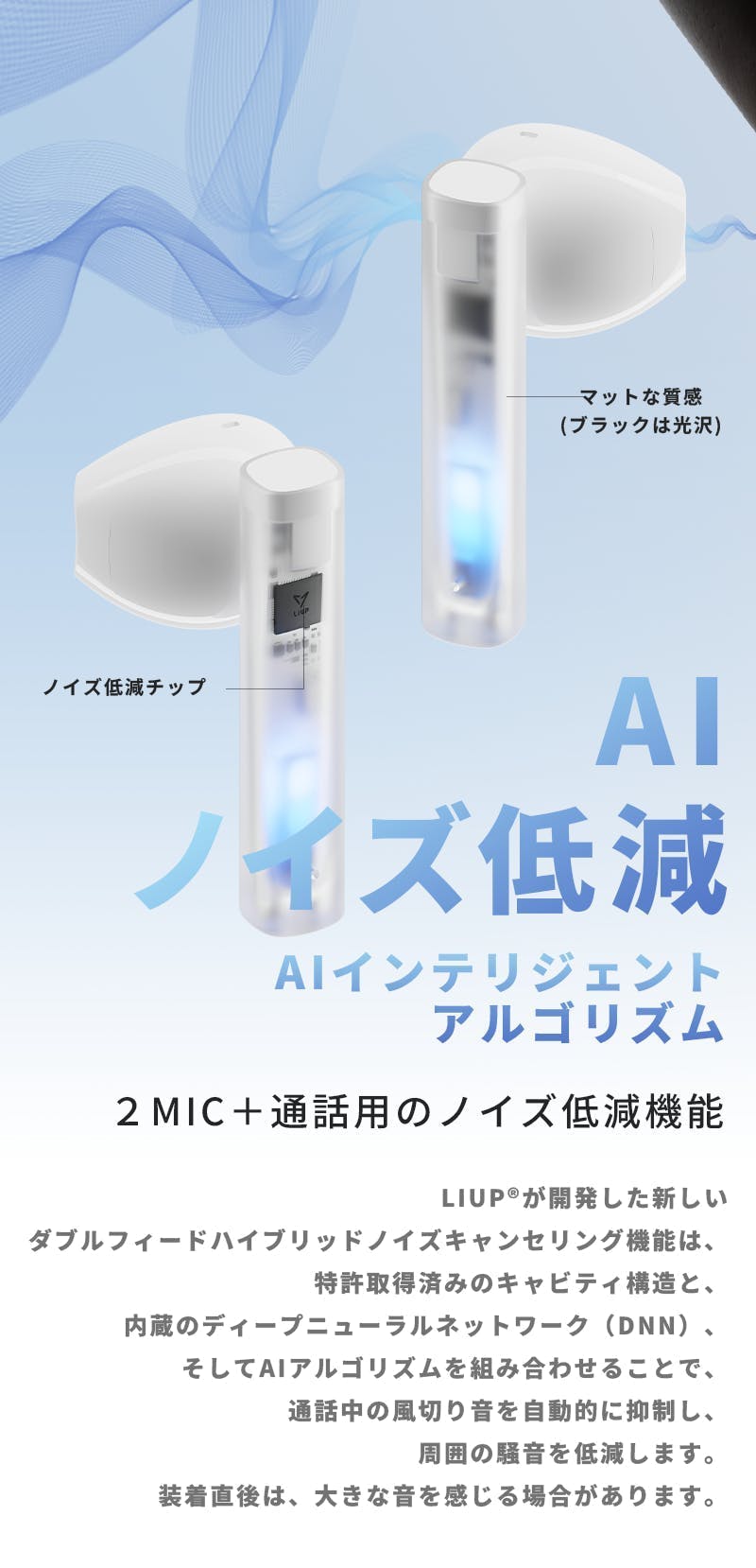AIノイズキャンセリング技術により、クリアで没入感のある音楽体験を実現- 高品質なドライバーユニットで、細部まで際立つサウンドを再現