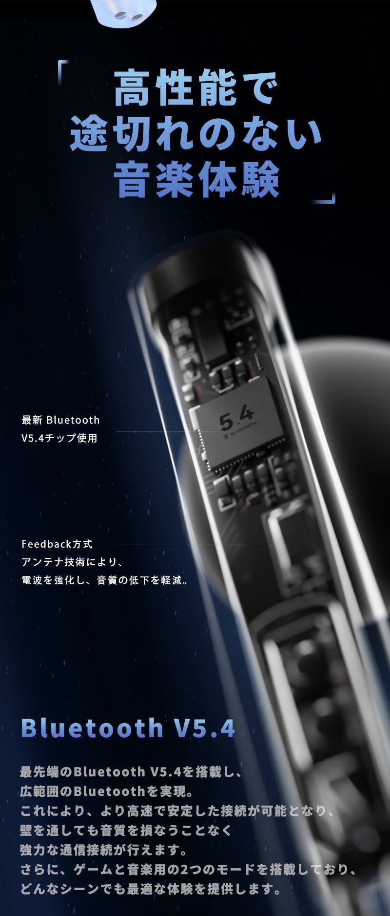 低遅延接続で、ゲームや動画視聴時も音ズレなし- 安定した接続で、途切れることのない音楽再生を保証