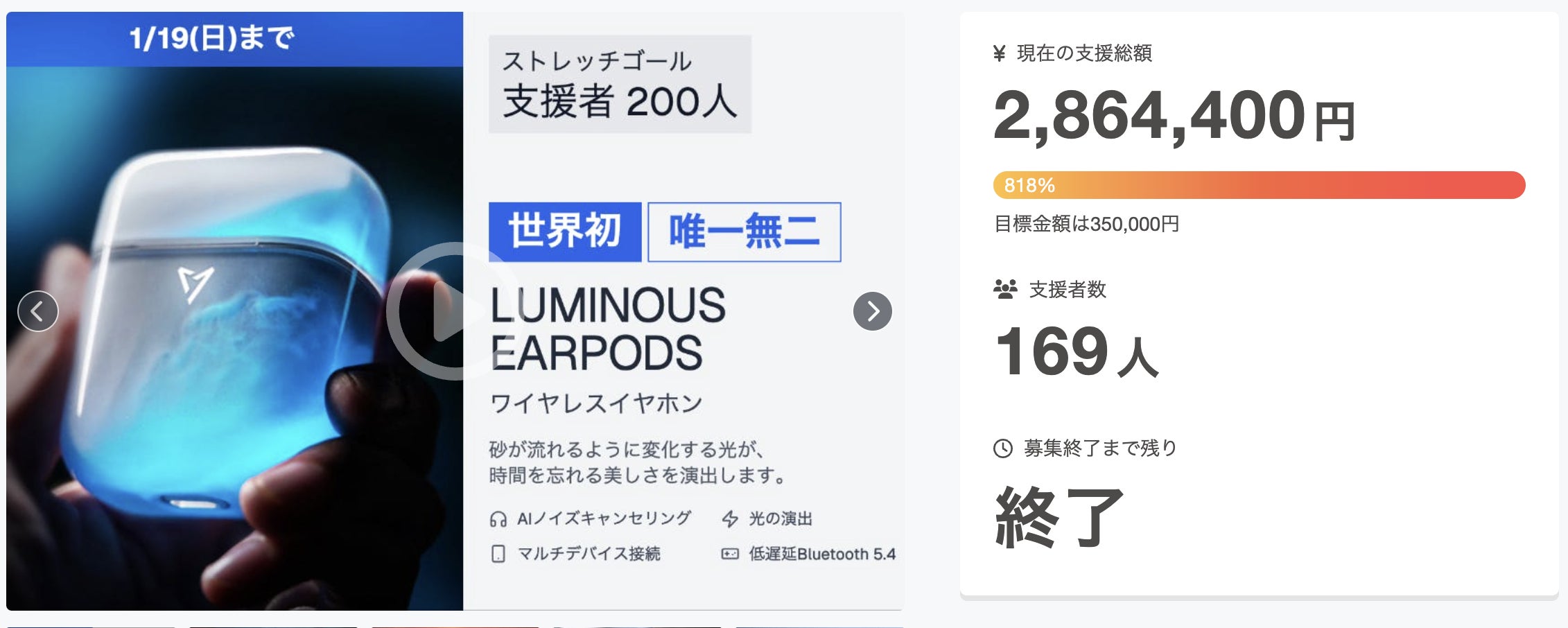 2026/01/19 22:22いつもご支援いただき、誠にありがとうございます。ワイヤレスイヤホン「LUMINOUS EARPODS」プロジェクトは、本日23:59で終了。残り1時間となりました。今だけ特別価格:9,800円「少し気になっていた」「後で見ようと思っていた」そんな方は、今が本当に最後のチャンスです。→→プロジェクトページはこちら最後の1時間、どうぞよろしくお願いいたします。 もっと見る