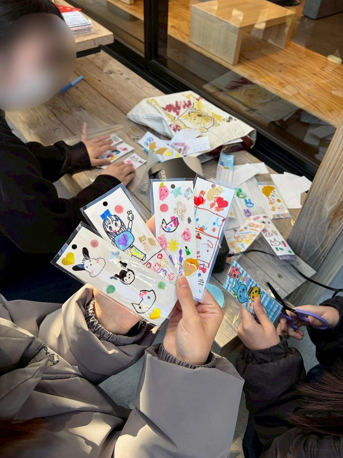 しおり作りでは子どもたちのアイデアあふれる作品がたくさんで、ラミネートをかける私たちがウキウキに!5個以上作ってくれる子もいてとってもやりがいを感じることができました。