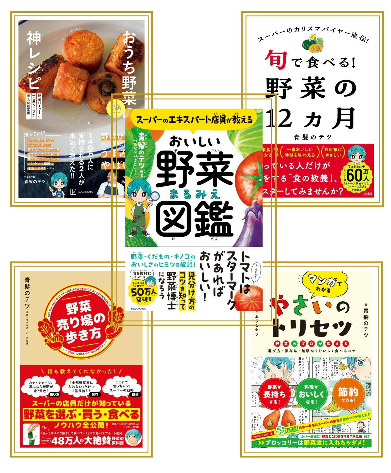 また、これまでに KADOKAWA・学研・講談社など大手出版社から野菜関連の書籍を5冊出版させていただき、累計販売数は5万部を突破しました。