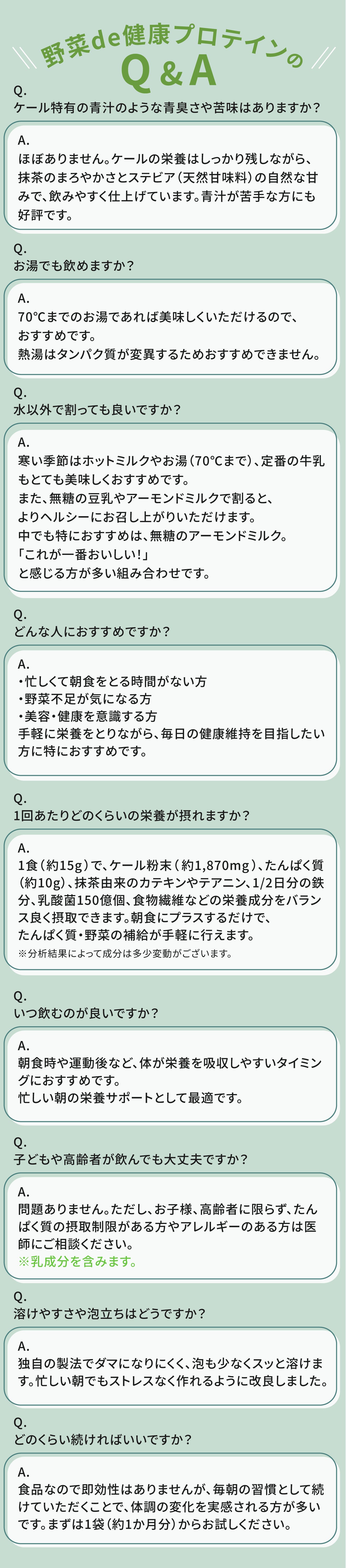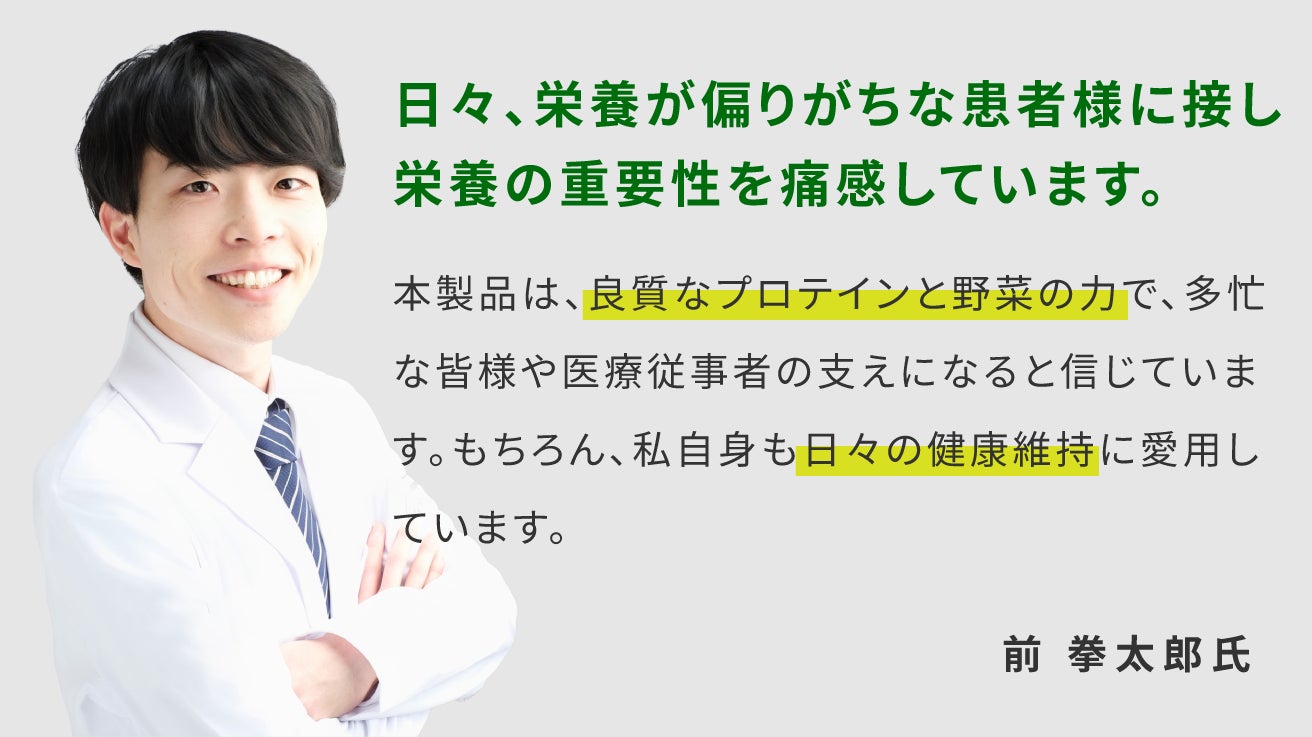 その想いで試行錯誤を繰り返し、既存の課題をすべてクリアにして生まれたのが、この『野菜 de 健康プロテイン』です。