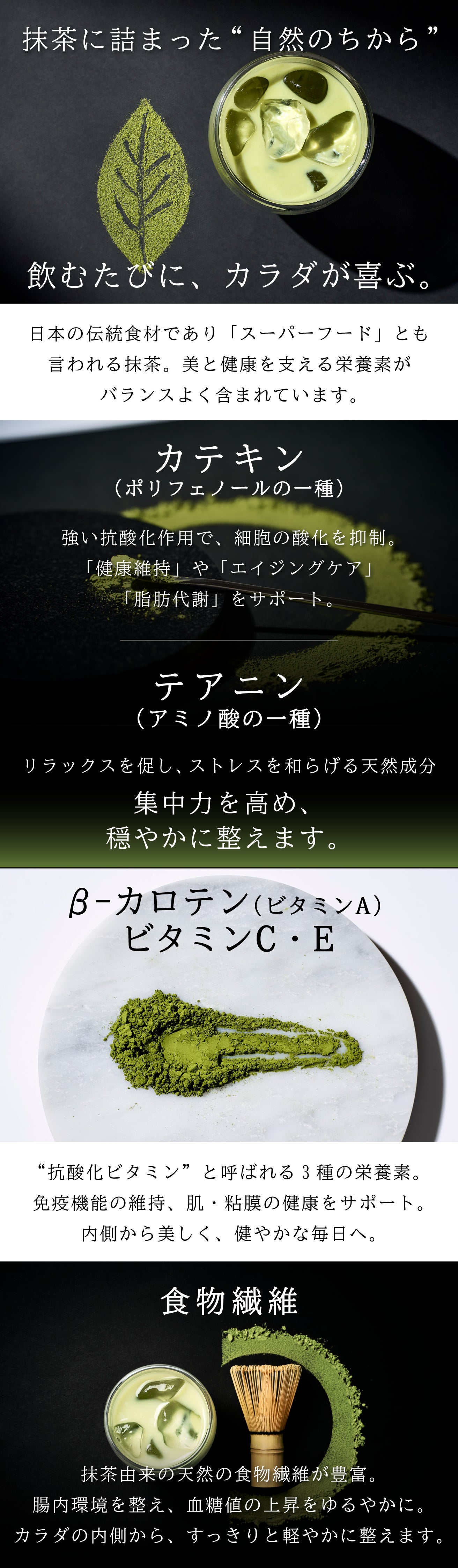 抹茶の自然な香りとやさしい甘さで、毎日続けたくなる味わいに仕上げました。