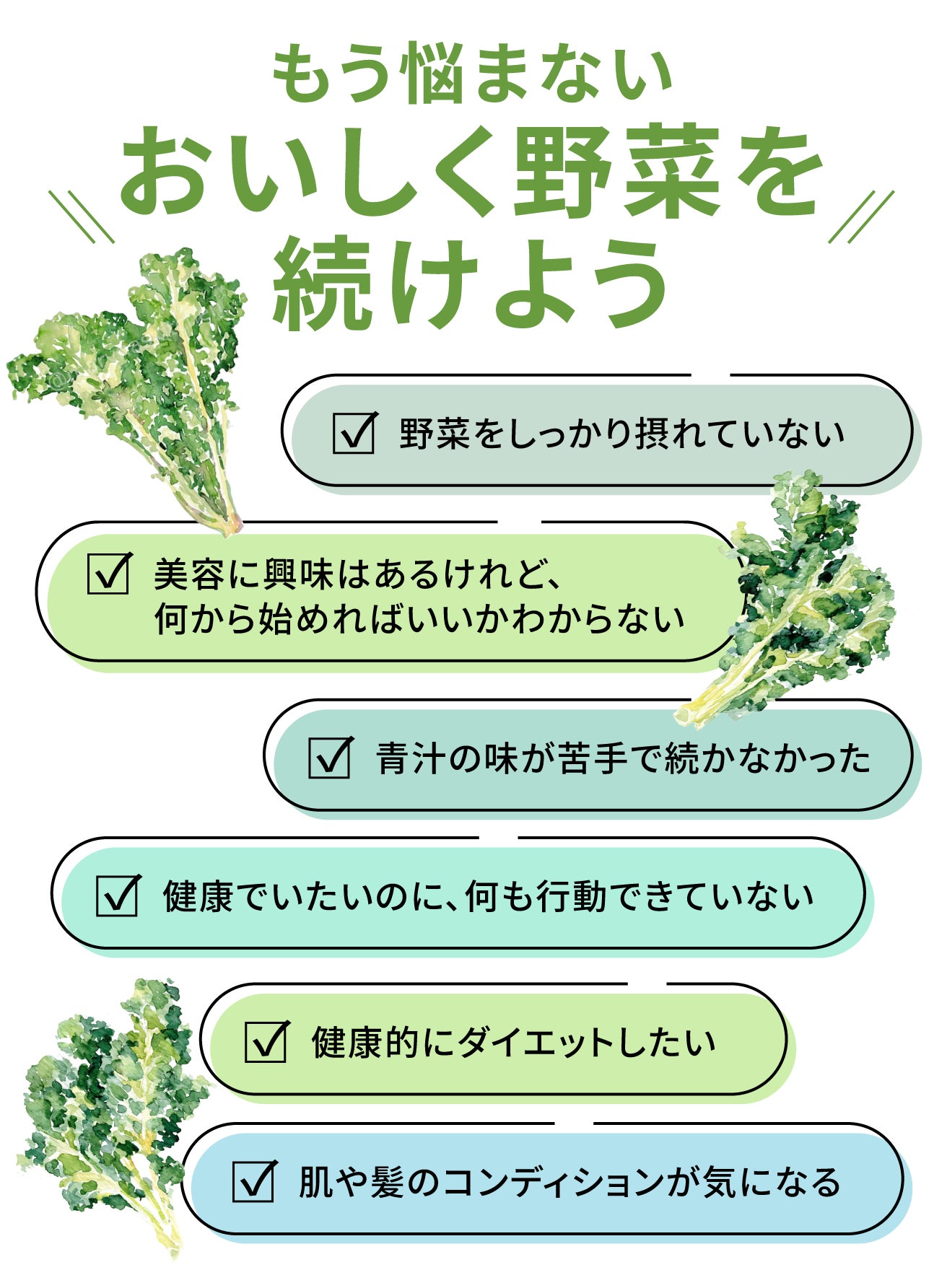 忙しくて野菜が足りないと感じる現代の食生活に、ケールを毎日の一杯で手軽に取り入れることは、健康と美容を守る一番シンプルな方法。