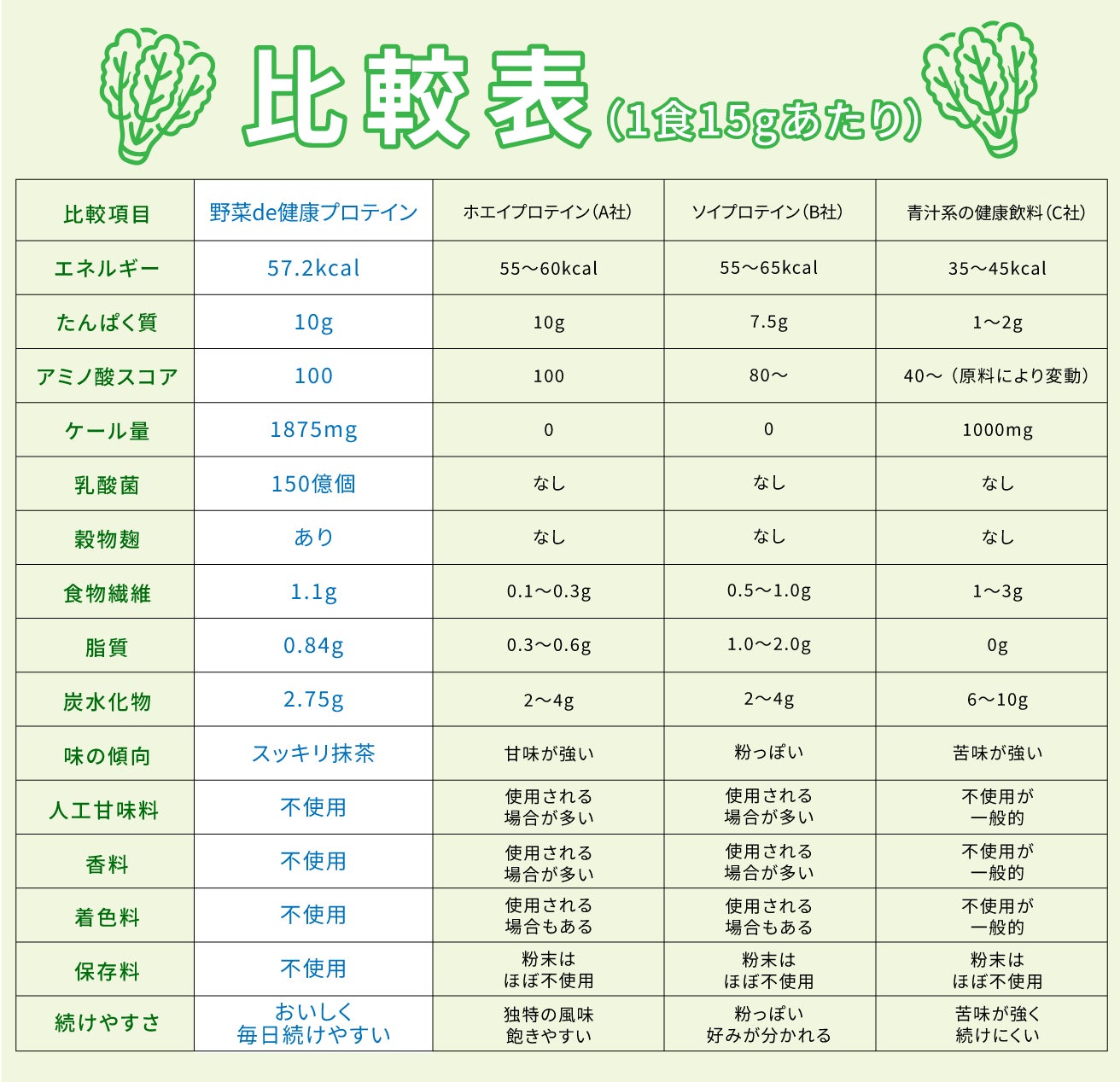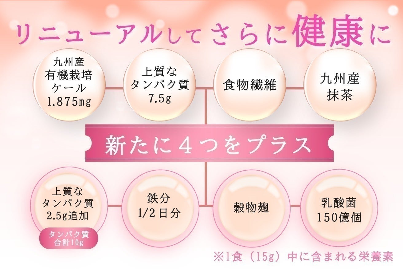 そして、この野菜への情熱の集大成として開発したのが、今回ご紹介させていただくリニューアルした「NEW 野菜de健康プロテイン」です。