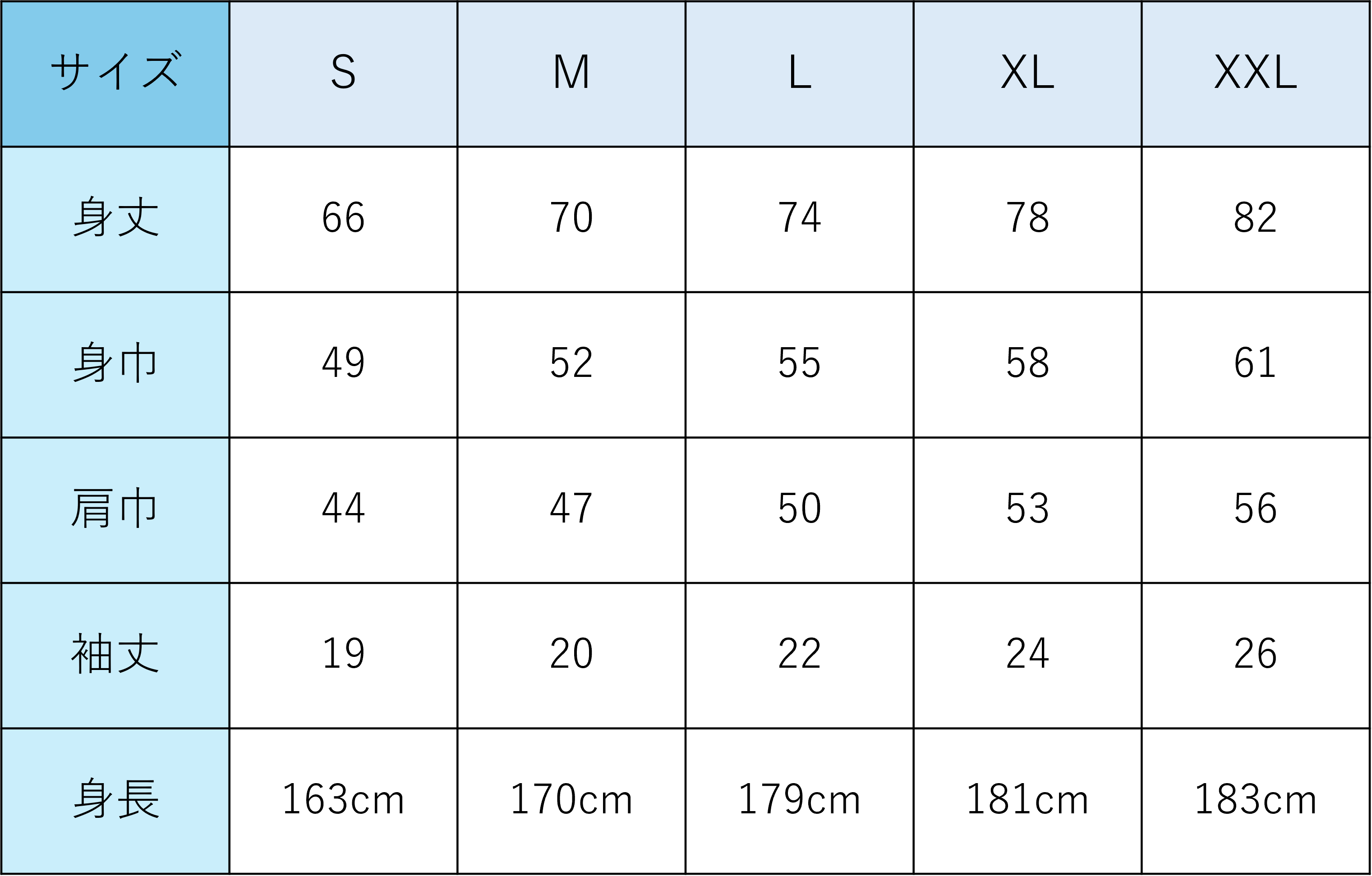 サイズ一覧 男女兼用(単位:cm)