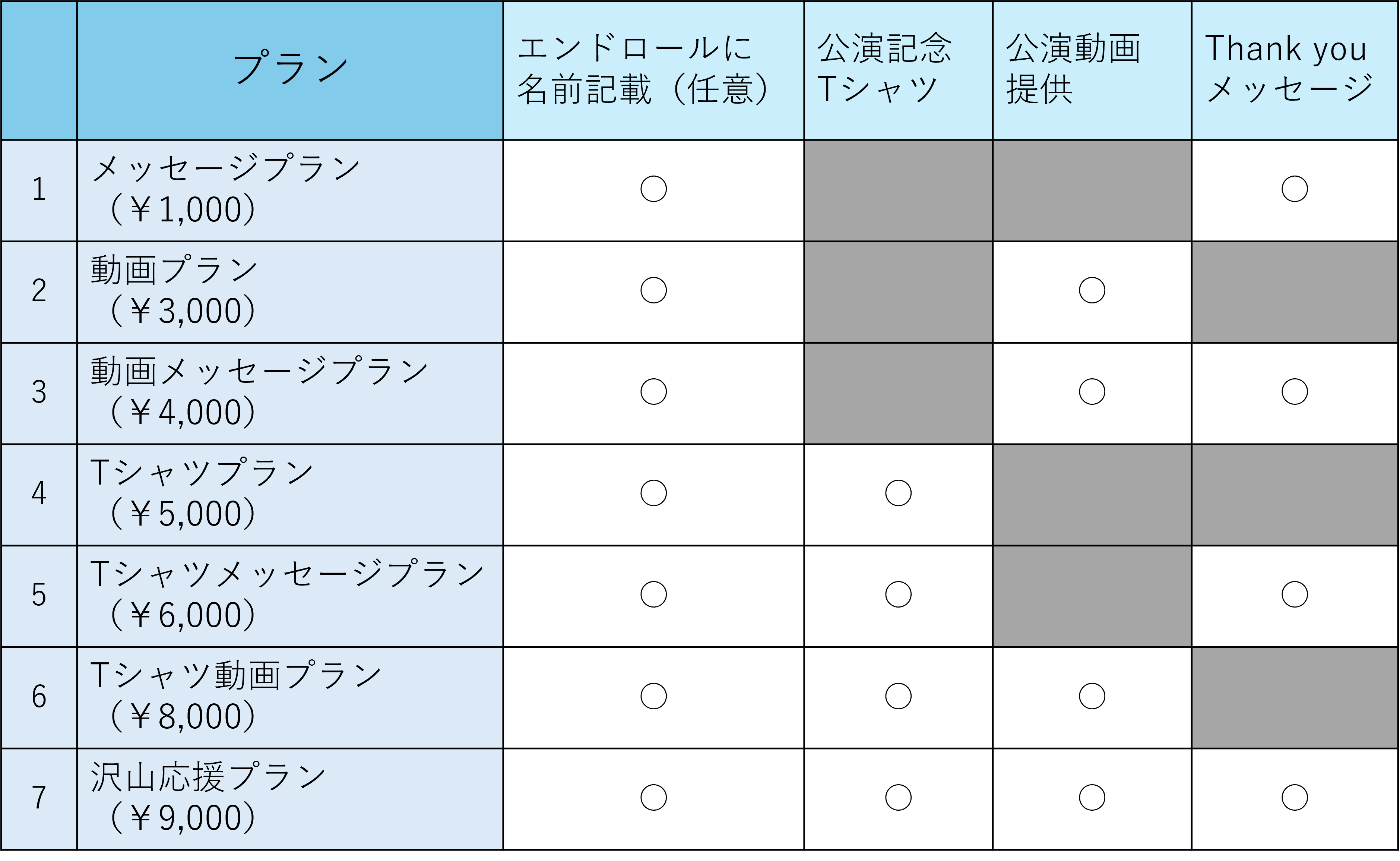 応援プランは以下の7種類をご用意しました✨