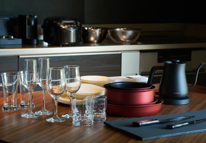 島の商店で、明日葉やくさやなど、お部屋でお料理をしたい方も多く、キッチンや調理器具も