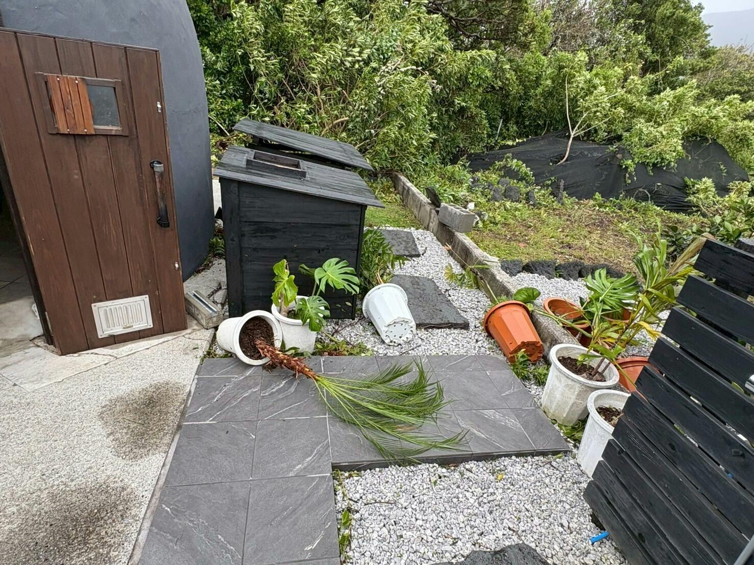 自慢の観葉植物も折れてしまいガーデンの再生に