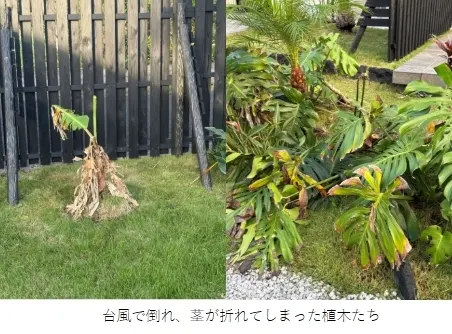 自慢の観葉植物も折れてしまいガーデンの再生に
