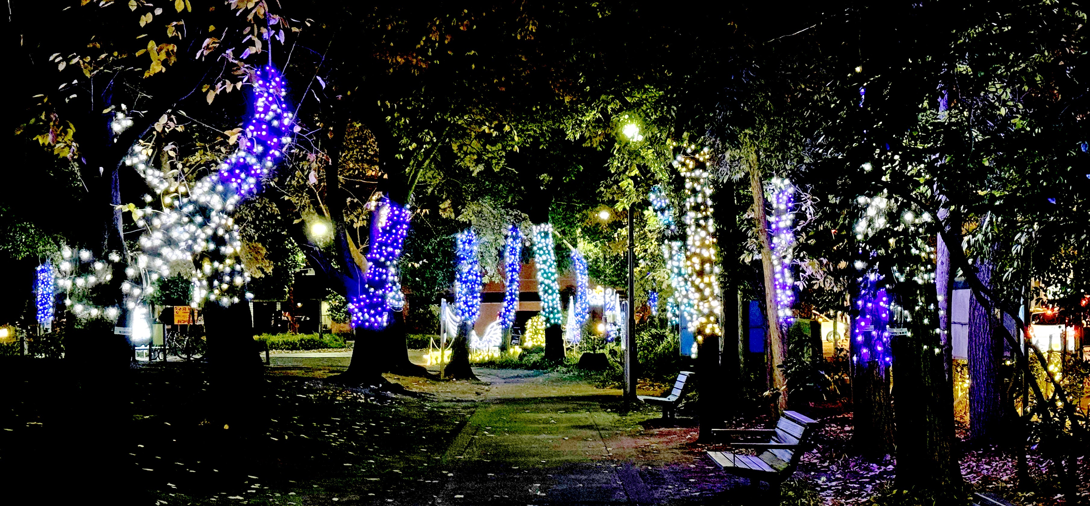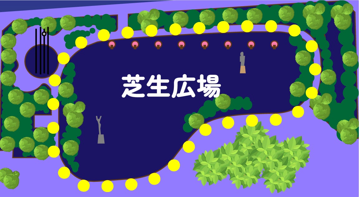 昨年の2倍となる数の木々にストレートライトを巻きつけ、後谷公園全体をあたたかい光で包みます。