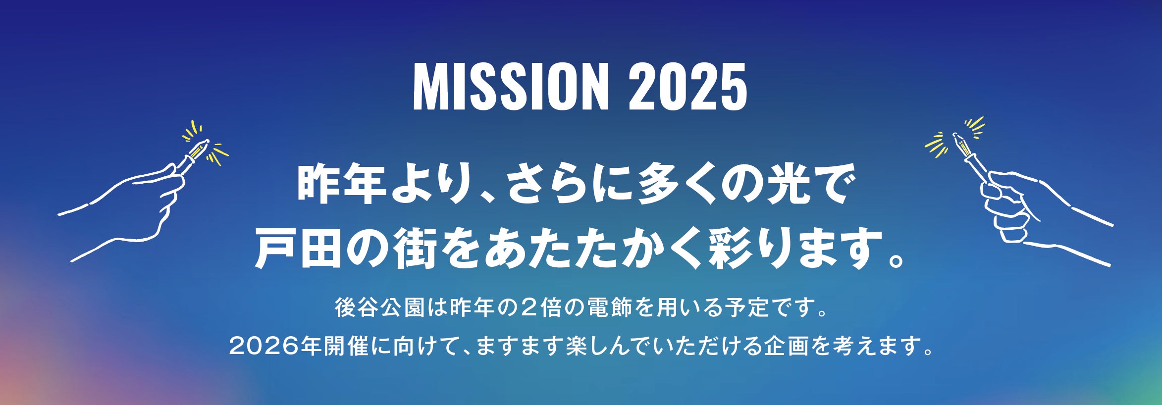 2025年もたくさんの笑顔で溢れる戸田市の冬を、皆さんと共に創り上げ、楽しみたいと思っています。