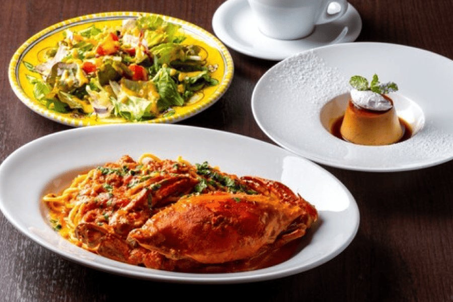①オステリアアオオサキさんの平日ランチコースペアチケットをお届けします。
