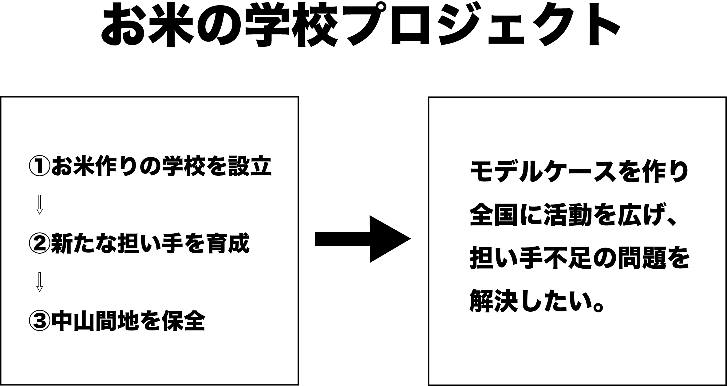 ①お米づくりの学校を設立すれば荒廃してゆく田んぼの保全が可能に