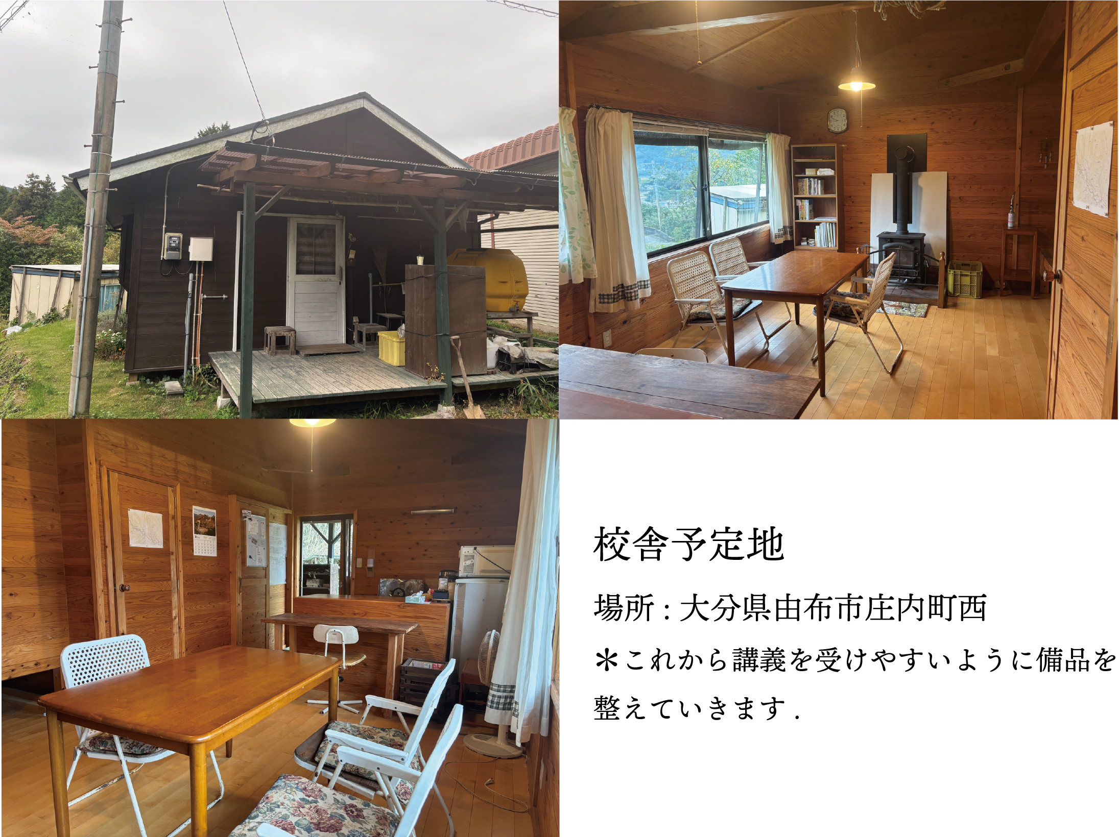 校舎となるログハウスを、地域の先輩農家さんから譲っていただきました。そこを拠点に、授業で使うテキストや座学用の資料を整え、いつでも講義を始められるよう準備を進めています。