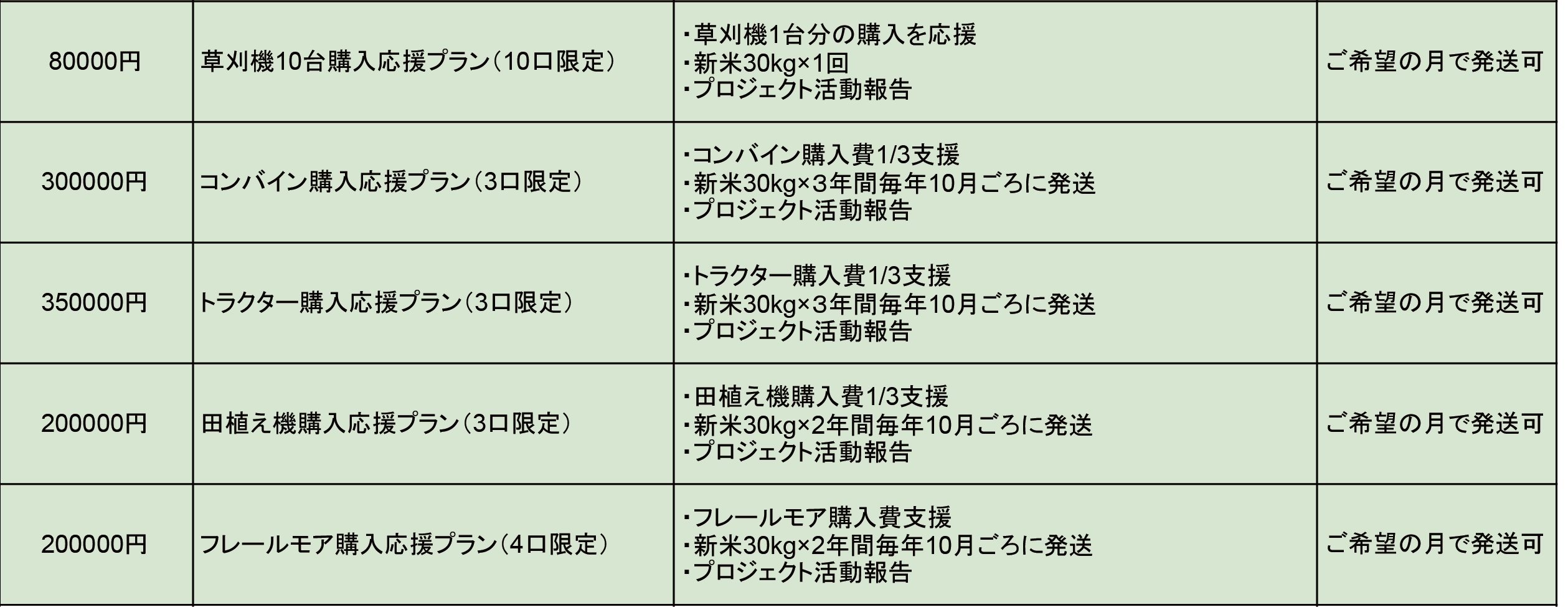 このプランは、農業機械の購入を直接応援していただくためのものです。