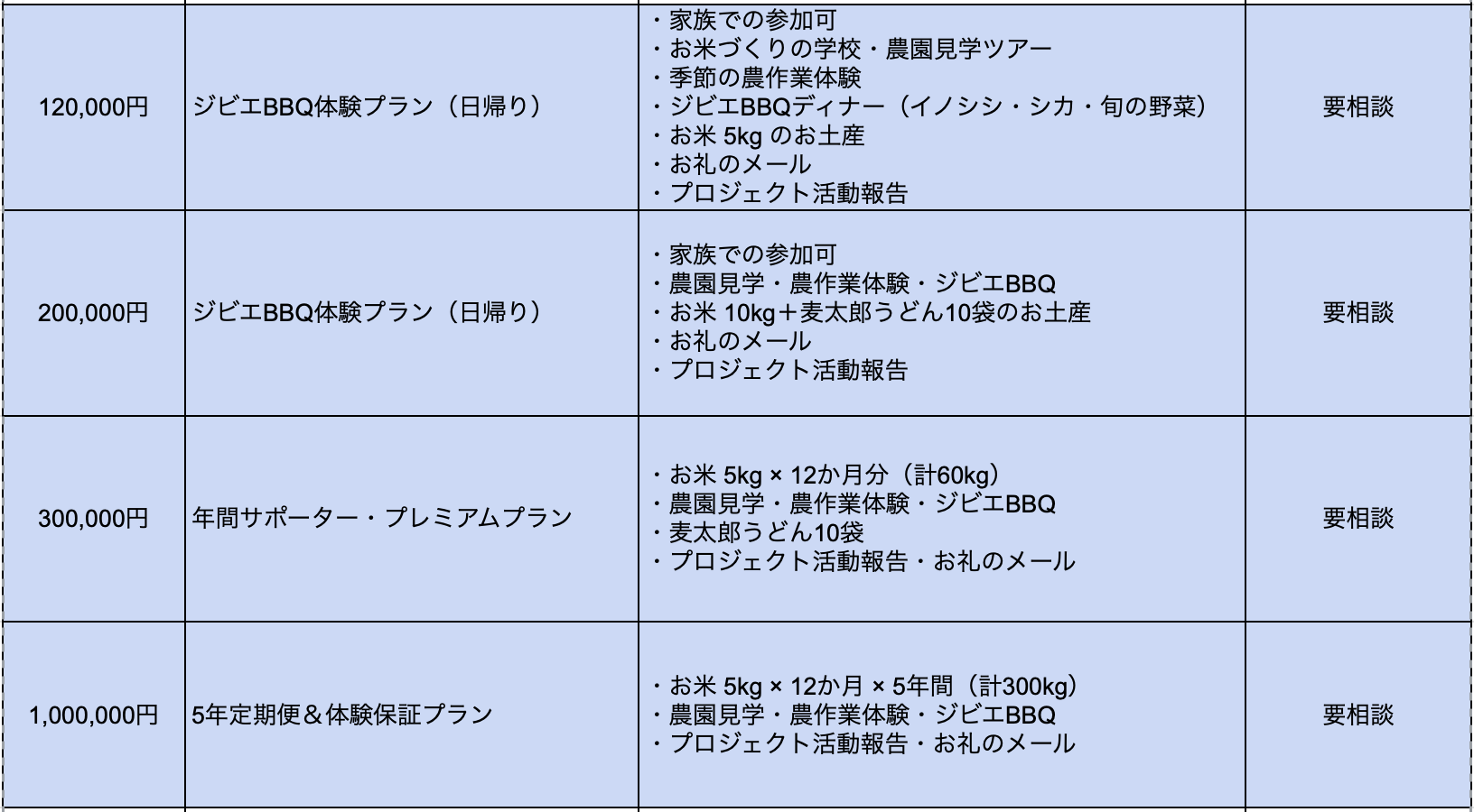 高額支援になりますが100万円のプランではこの先5年間ものお米を確保させていただきます。