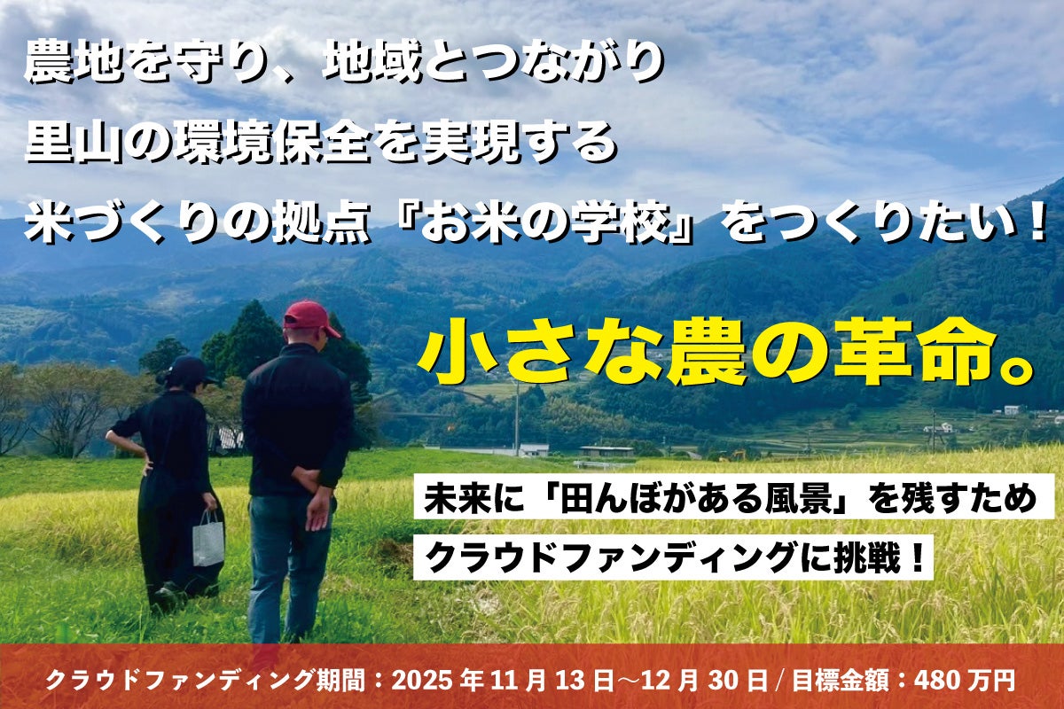 そして2025年。「米不足」、「中山間地が抱える様々な問題」、「地球環境の問題」を解決するための一歩として、お米の学校を設立するためクラウドファンディングをスタート!