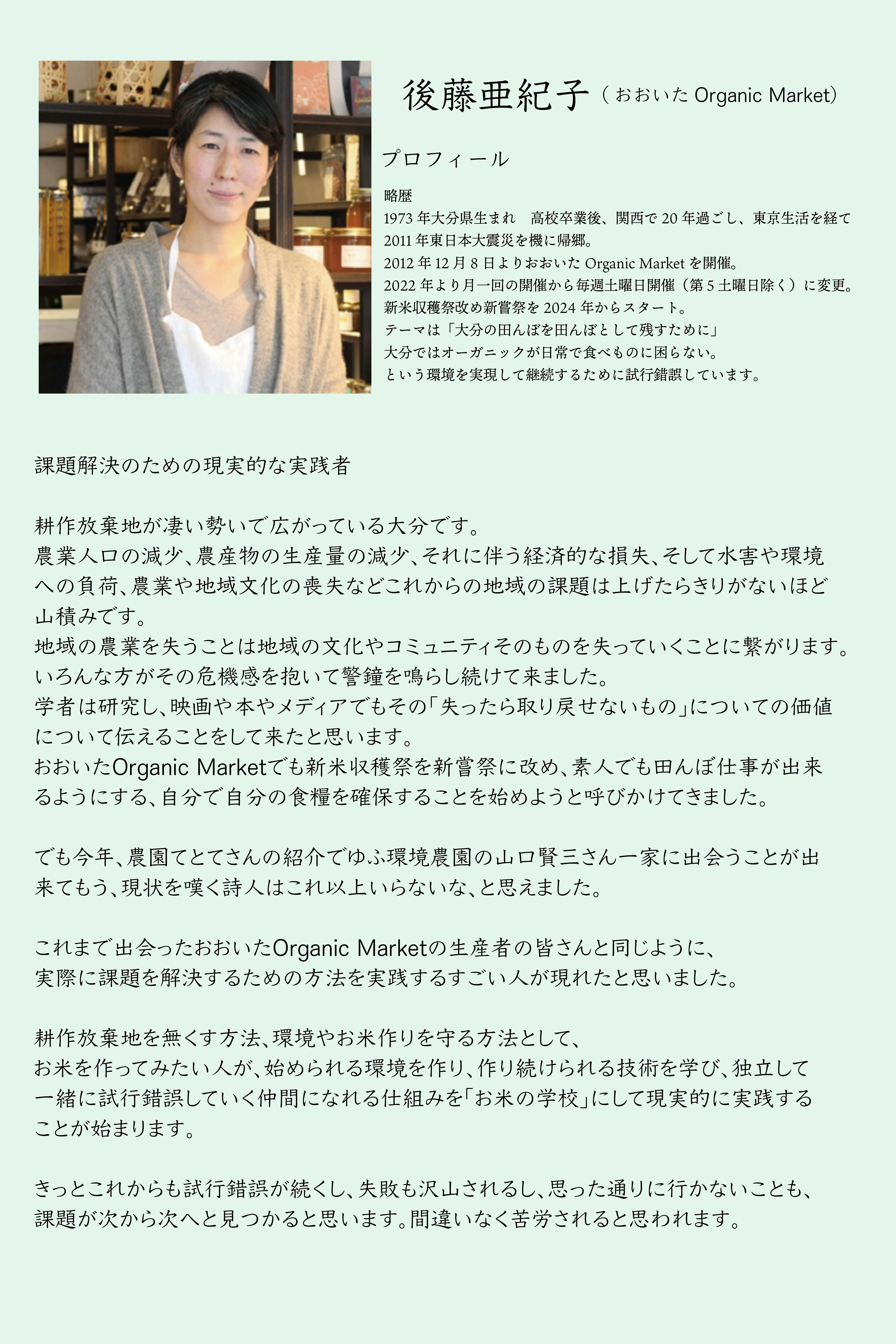 また、自分たちの経験を「言語化」し、誰が学んでも再現性が高く、実践につなげられるよう、稲作の過程を丁寧に記録した栽培レポートやテキストの作成も進行中です。さらに、より過酷になる気候変動の中で継続的に稲作を行うための情報交換、交流のため、県内外の有機稲作農家さんとのネットワークづくりも行います。加えて、今後はお米づくりだけでなく、環境保全の視点から多角的に連携できるよう、教育・環境・福祉など他分野の機関とも協力をスタートしています。