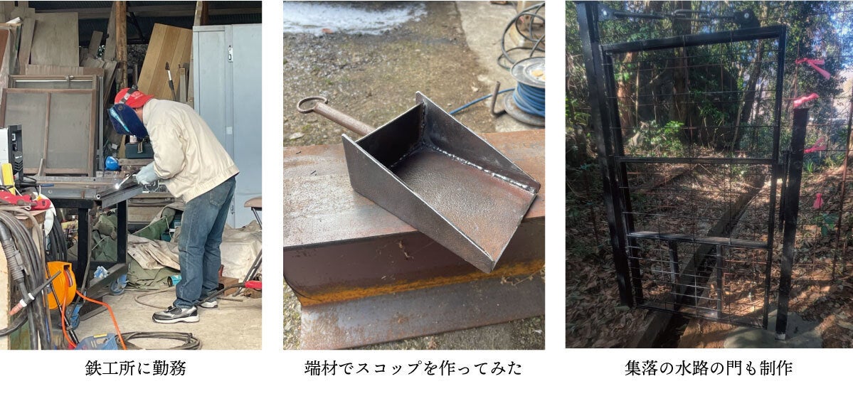 造林業の親方のもとで草刈りと機械の管理や改造のアイデア、スキルを磨き、鉄工所の親方のもとでは溶接や鉄の切断、重量物の取り扱い、高所作業、危機管理、ものづくりのスキルを学びました。