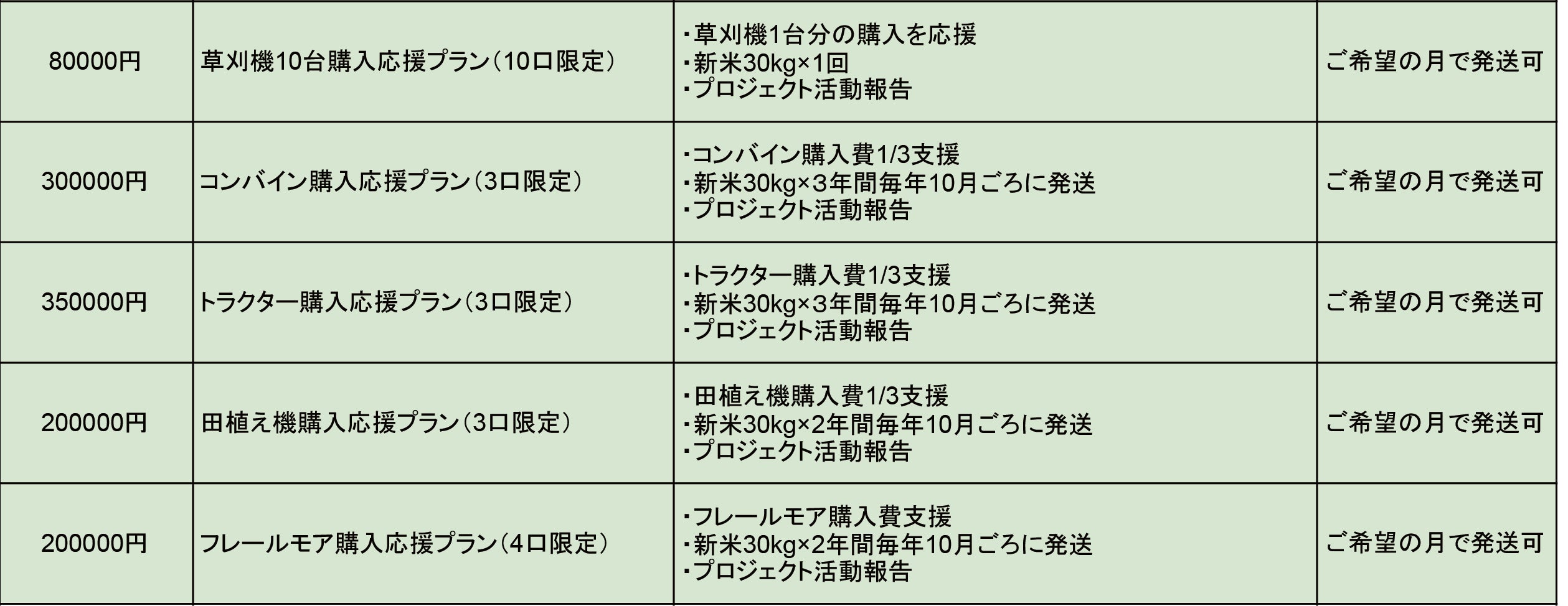 このプランは、農業機械の購入を直接応援していただくためのものです。