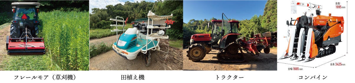 中山間地域でのお米づくり、農地の荒廃を防ぐには、草刈機・田植え機・トラクター・コンバイン・フレールモアといった機械が欠かせません。これらが古くなると、田んぼの維持や作業の安全性に大きく影響します。