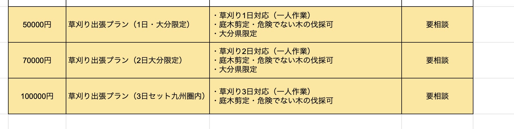 このプランは、私が最も得意な農作業である、草刈りがリターンとなります。