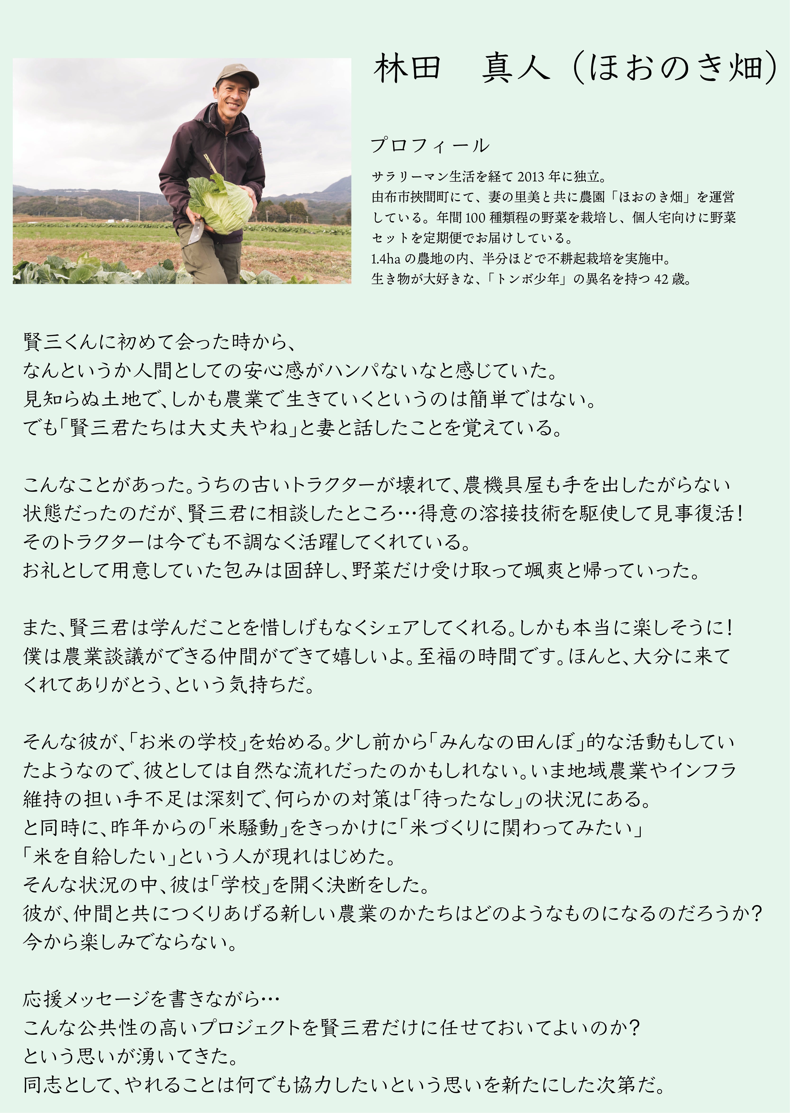 そして2025年。「米不足」、「中山間地が抱える様々な問題」、「地球環境の問題」を解決するための一歩として、お米の学校を設立するためクラウドファンディングをスタート!