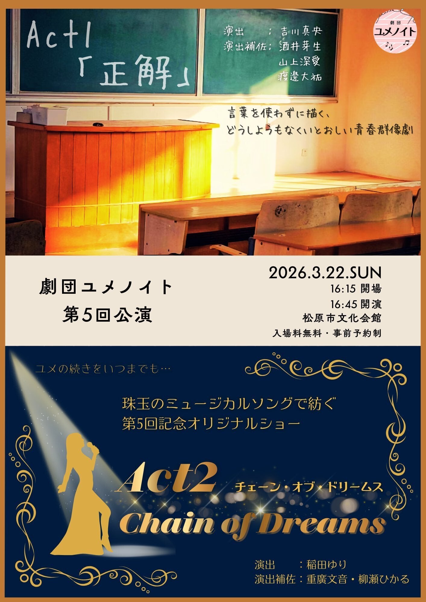 第5回公演では、劇団ユメノイト初の試みとなる2幕構成のショーを上演いたします👀