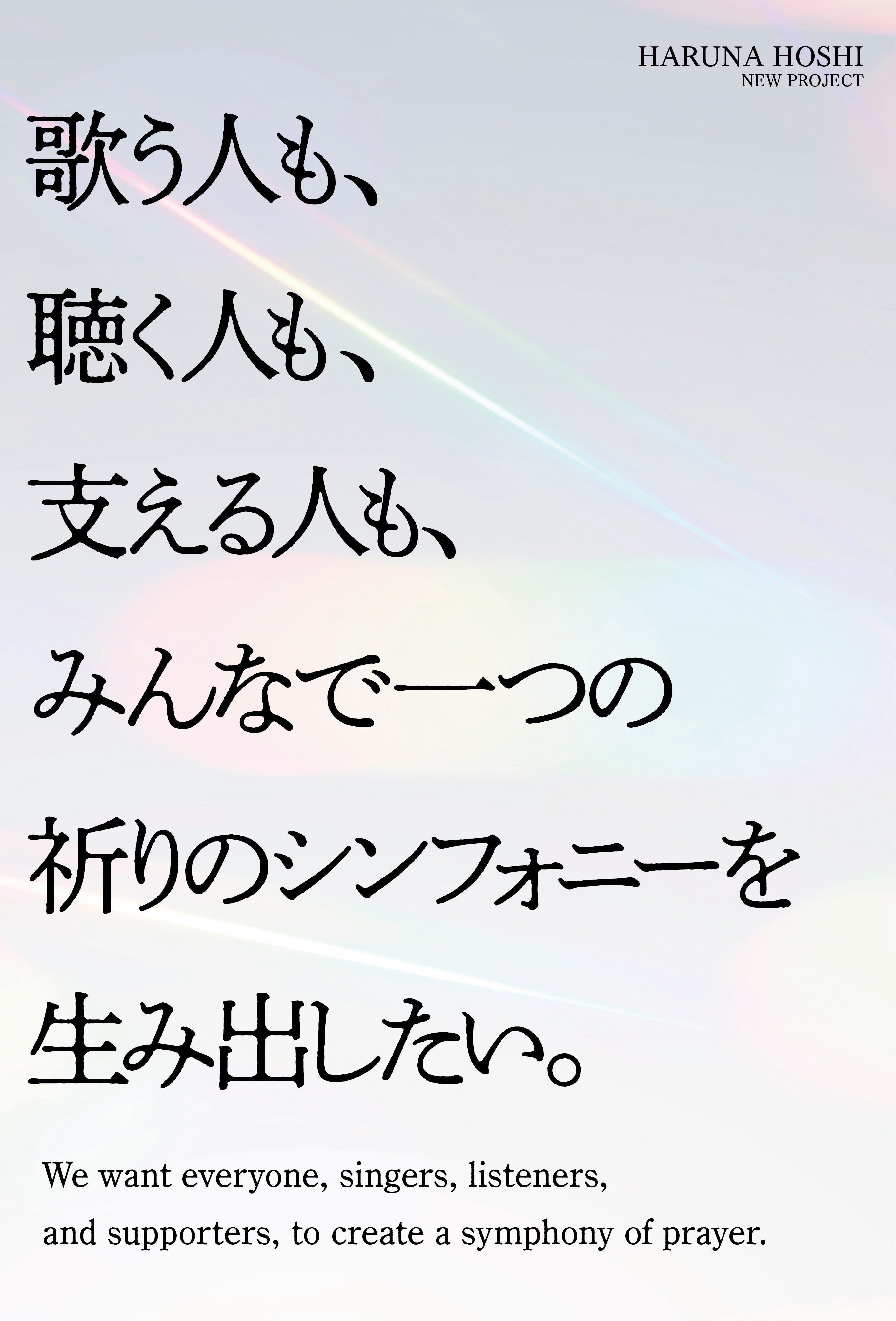 自力では限界があっても、一人一人が繋がり合えばそれぞれの夢に近づくことができる。私の声と、あなたの声と、会場に来てくださる方々の声今この瞬間しか味わえない音・光・祈り手にとって触れることはできないけれど心の深いところに、魂に残り続けるコンサートにしたい。