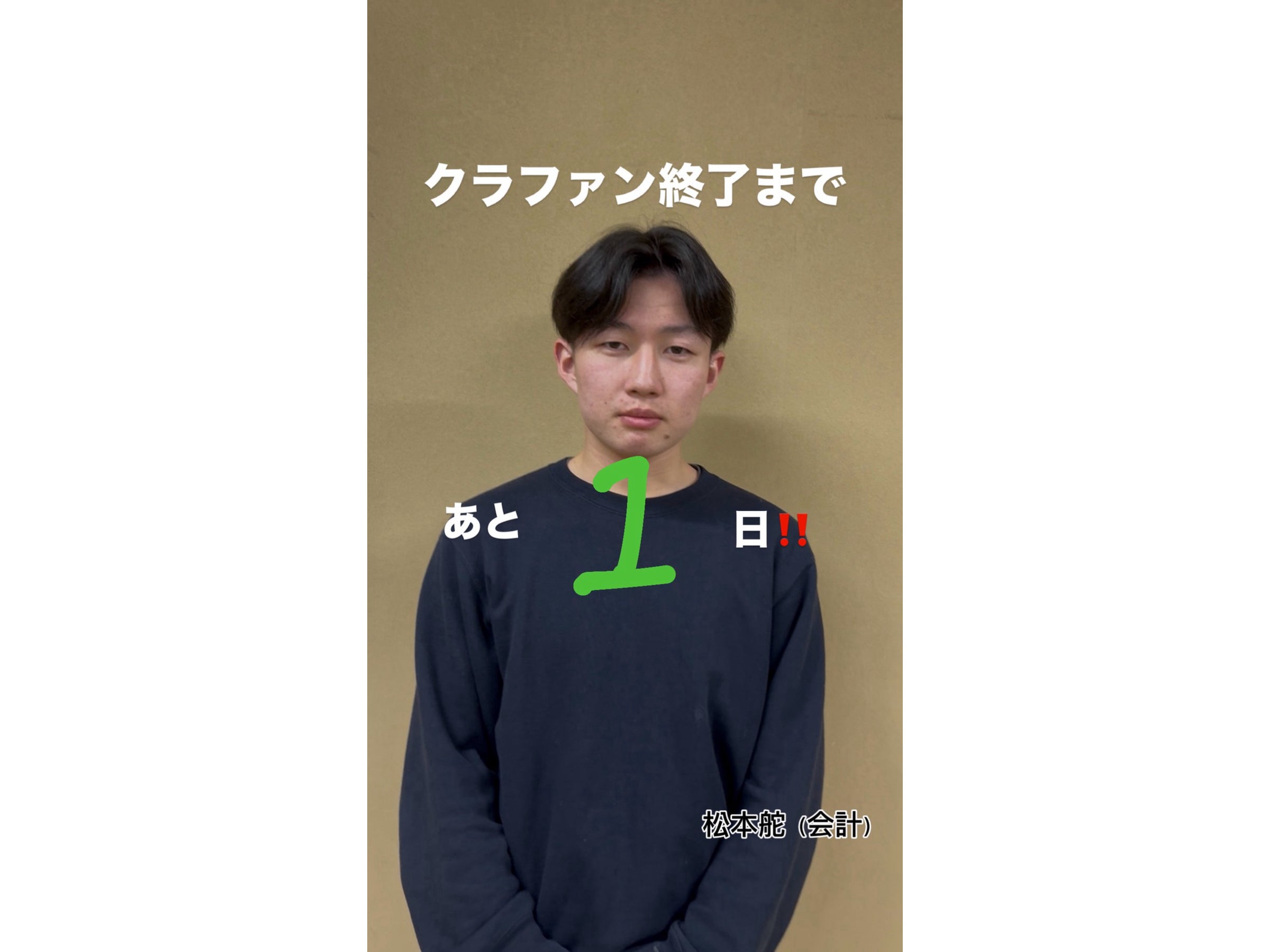 終了まで残り1日なのでラストスパートをかけたいと考えております。