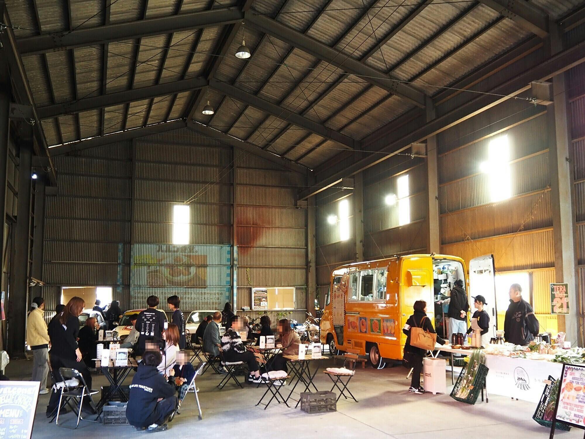 この倉庫にうつみ農園様のキッチンカーを入れて、期間限定の倉庫カフェ「VEGGIE GARAGE」を開きます!