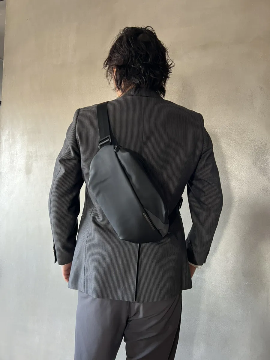 今回のボディバッグも、ビジネス・カジュアル問わず、どんなシーンでも自然に馴染む「大人の余裕」を感じさせるデザインを追求しています。無駄を削ぎ落としながらも、必要な機能はしっかり備えた“ちょうどいい”バランスを目指しました。