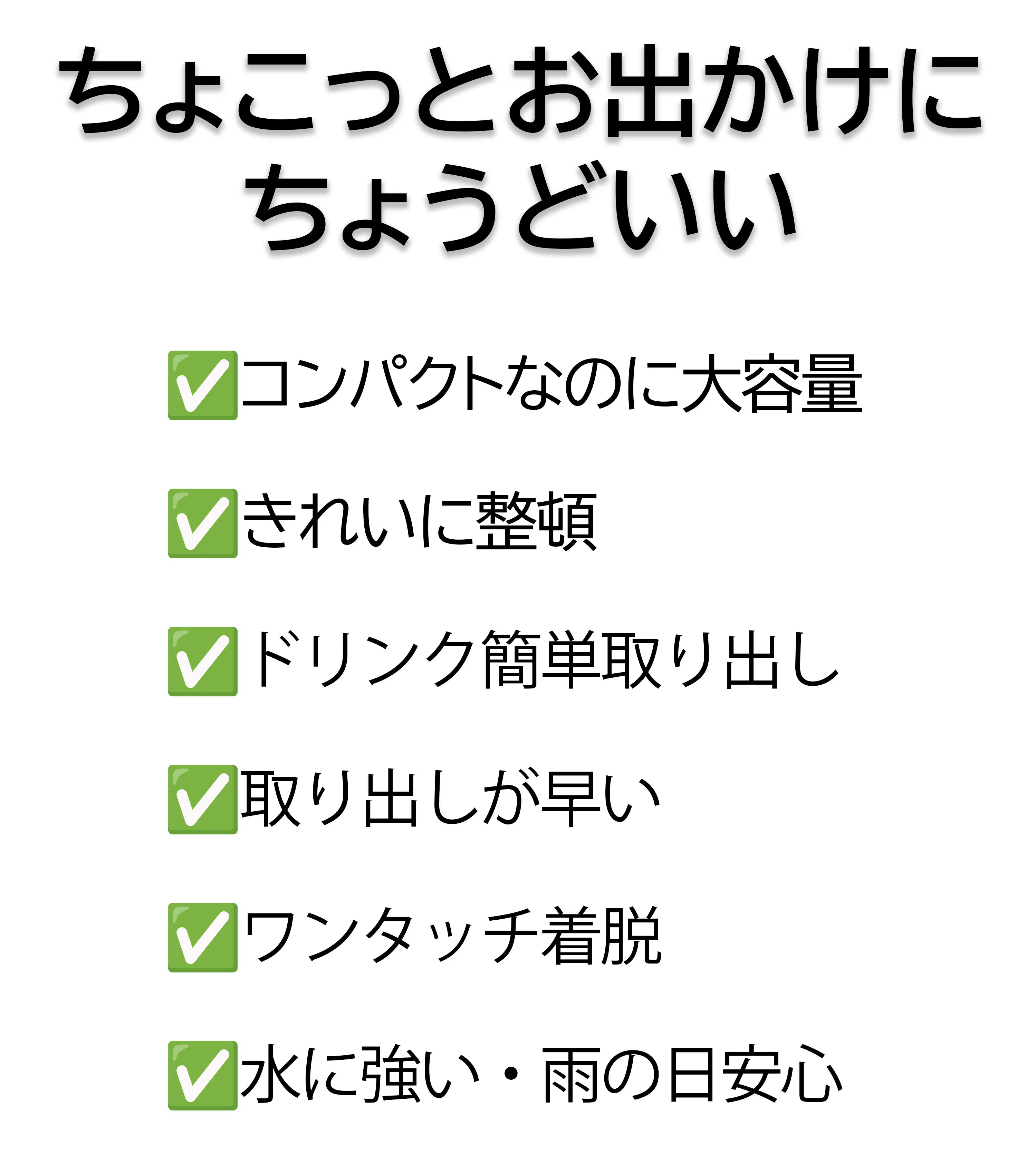 天候を気にせずアクティブに動けるから、通勤・旅行・アウトドアまで幅広いシーンで活躍。機能性とスタイルを兼ね備えました。