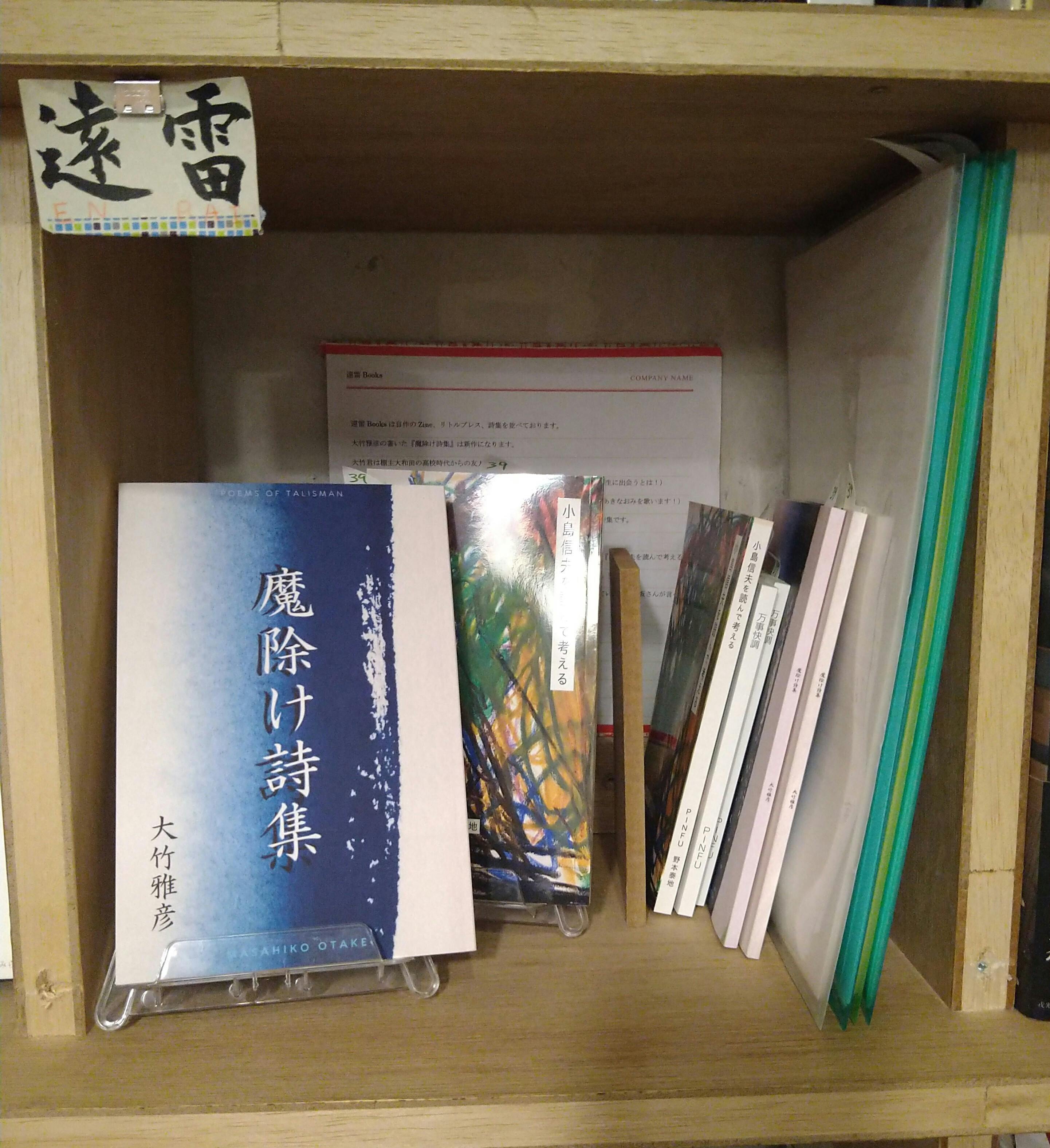 なお、吉祥寺のBook Mansionというシェア型書店に棚を契約している友人が『魔除け詩集』を置いてくれているのが下の写真です。