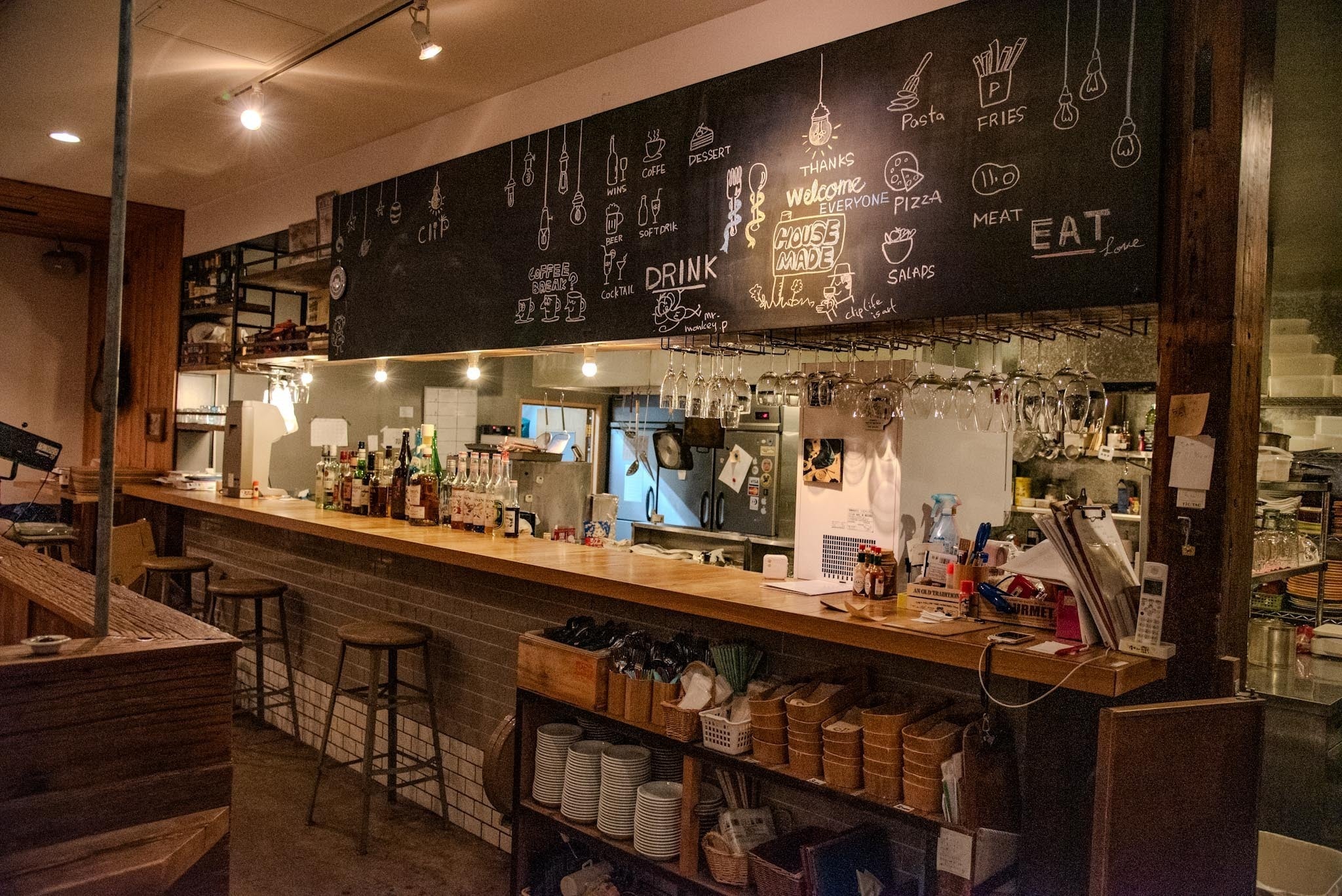 大きなカウンターBARとキッチンを備えておりお酒だけでなく美味しい料理も楽しめるお店です。