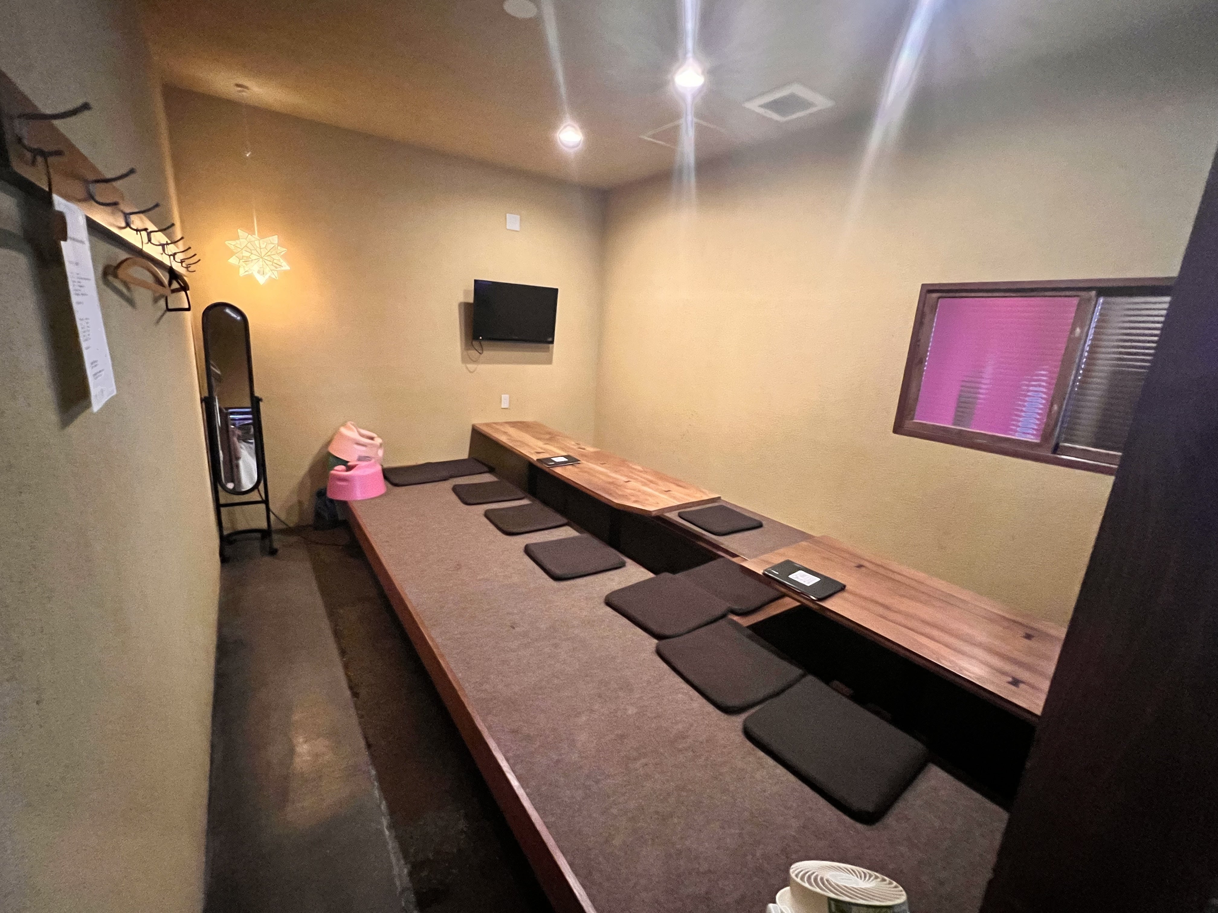 ・お座敷エリアの席の取り壊し、楽屋としての改装、新たに出口用の扉の設置