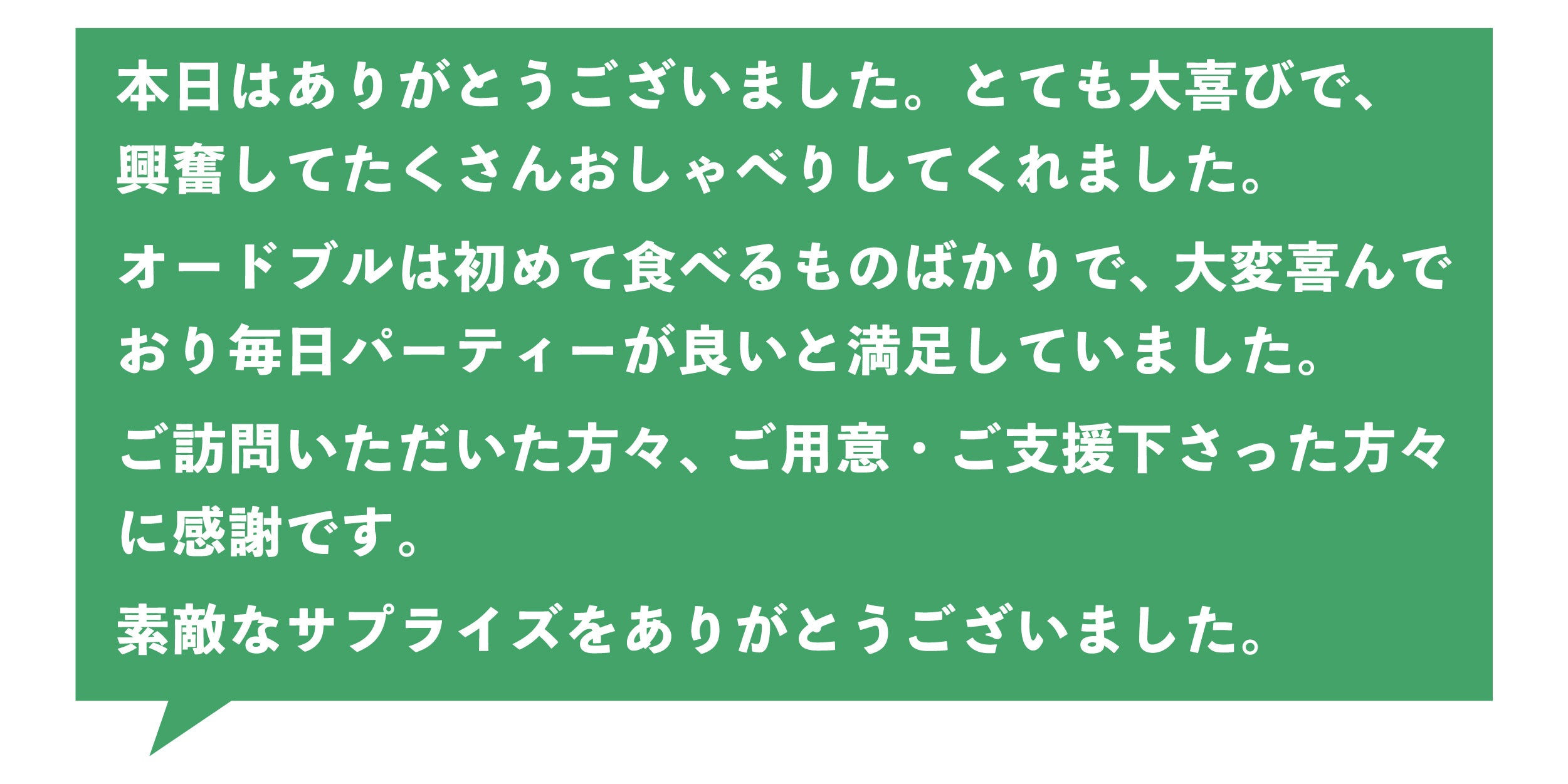 ・プレゼント(寄贈)の内容:オードブル、お菓子、本のセット