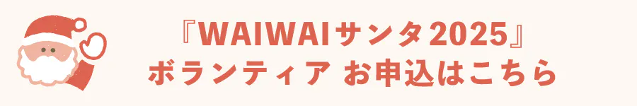 ボランティア募集中!:訪問するサンタクロースに扮するボランティアは、運営事務局による面接・面談のうえご参加いただいています。『WAIWAIサンタ』のボランティアとしてご協力くださる方は、『WAIWAIサンタ』ボランティア申込フォームよりお申し込みください。