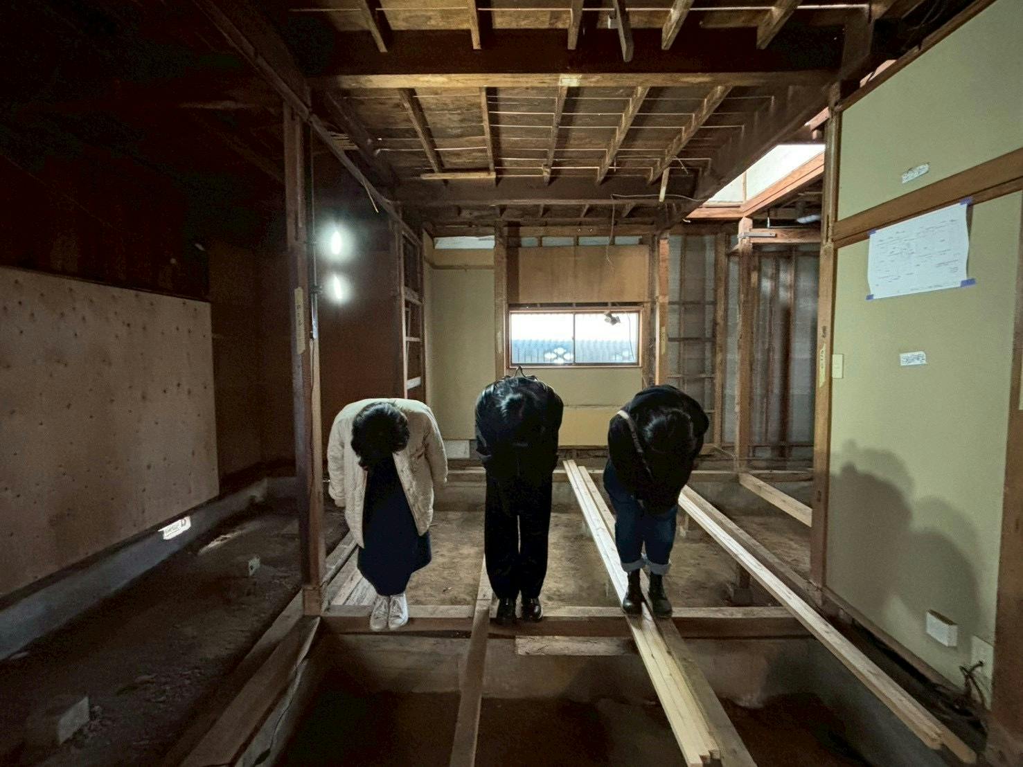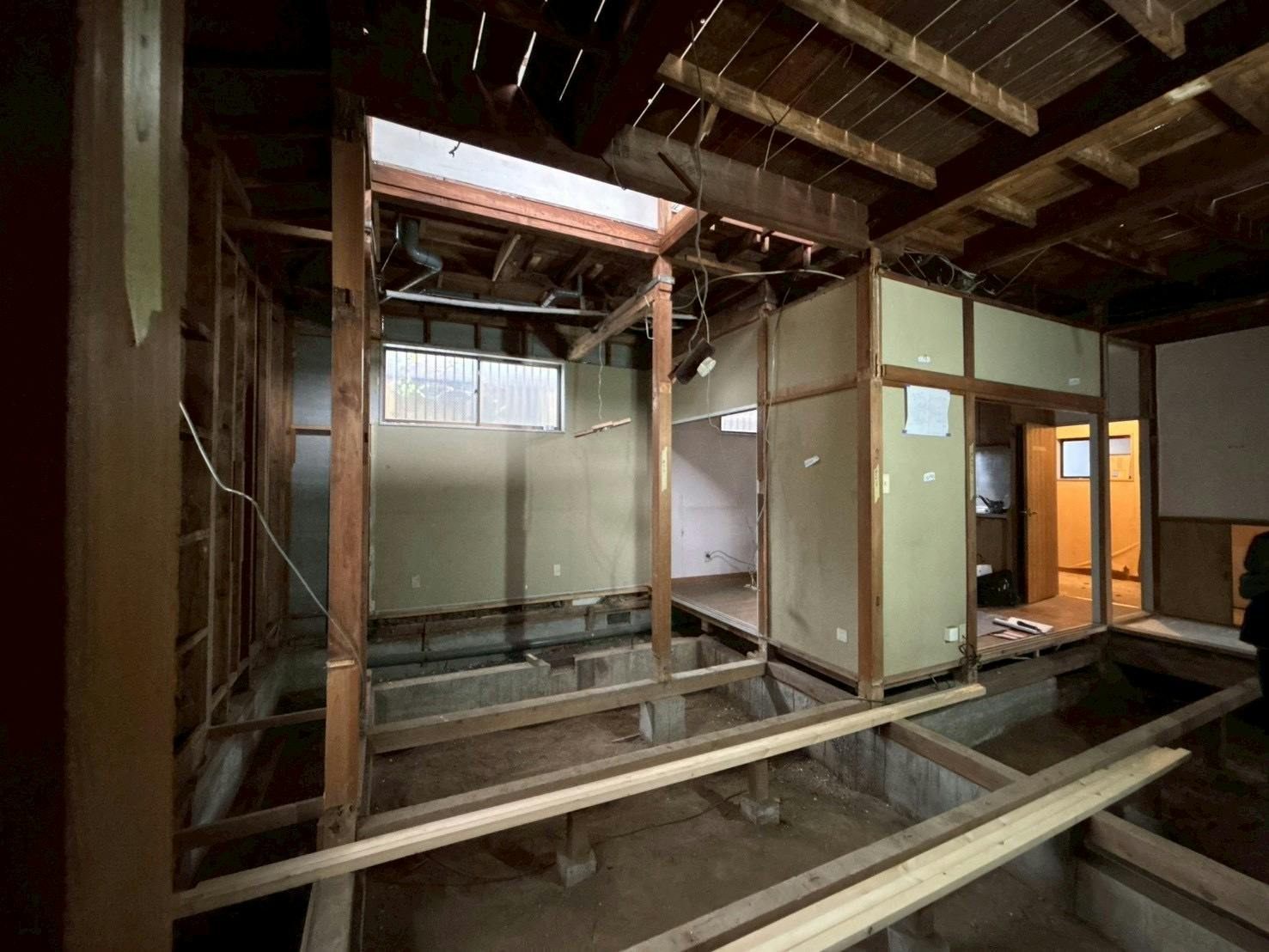 稽古場やギャラリーとして使いたい2階のスペースは、元々廊下と2部屋だったのをできるだけ取っ払って