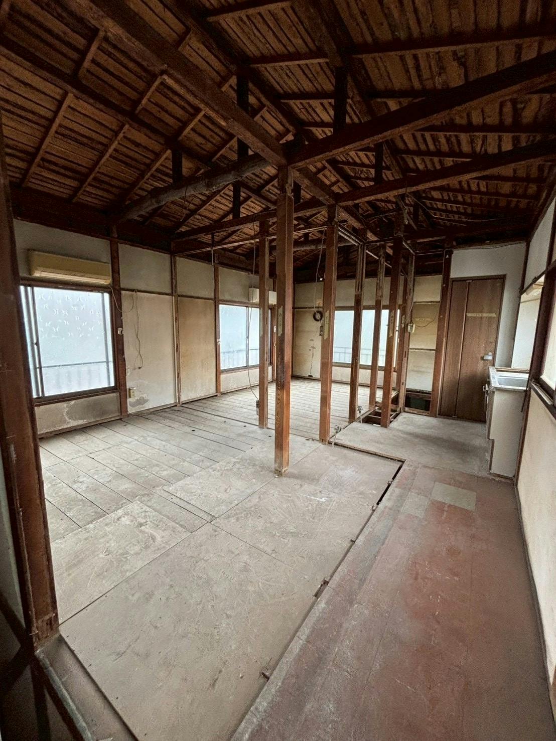 まずは広いアトリエスペースを確保するために、壁や天井、床も取っていきます。