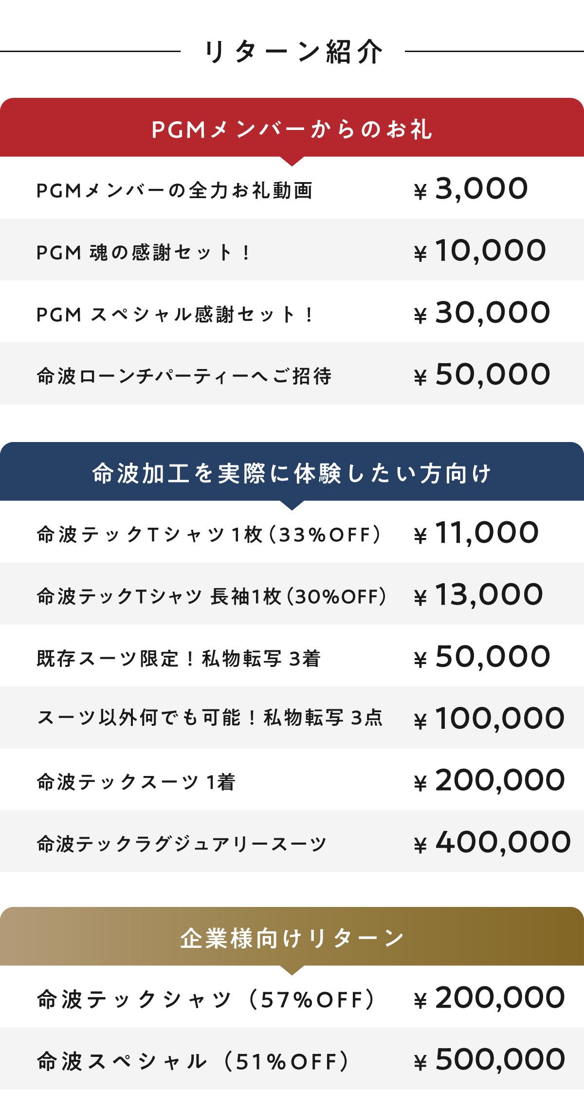 ・命波テックTシャツ、命波水の製品開発費