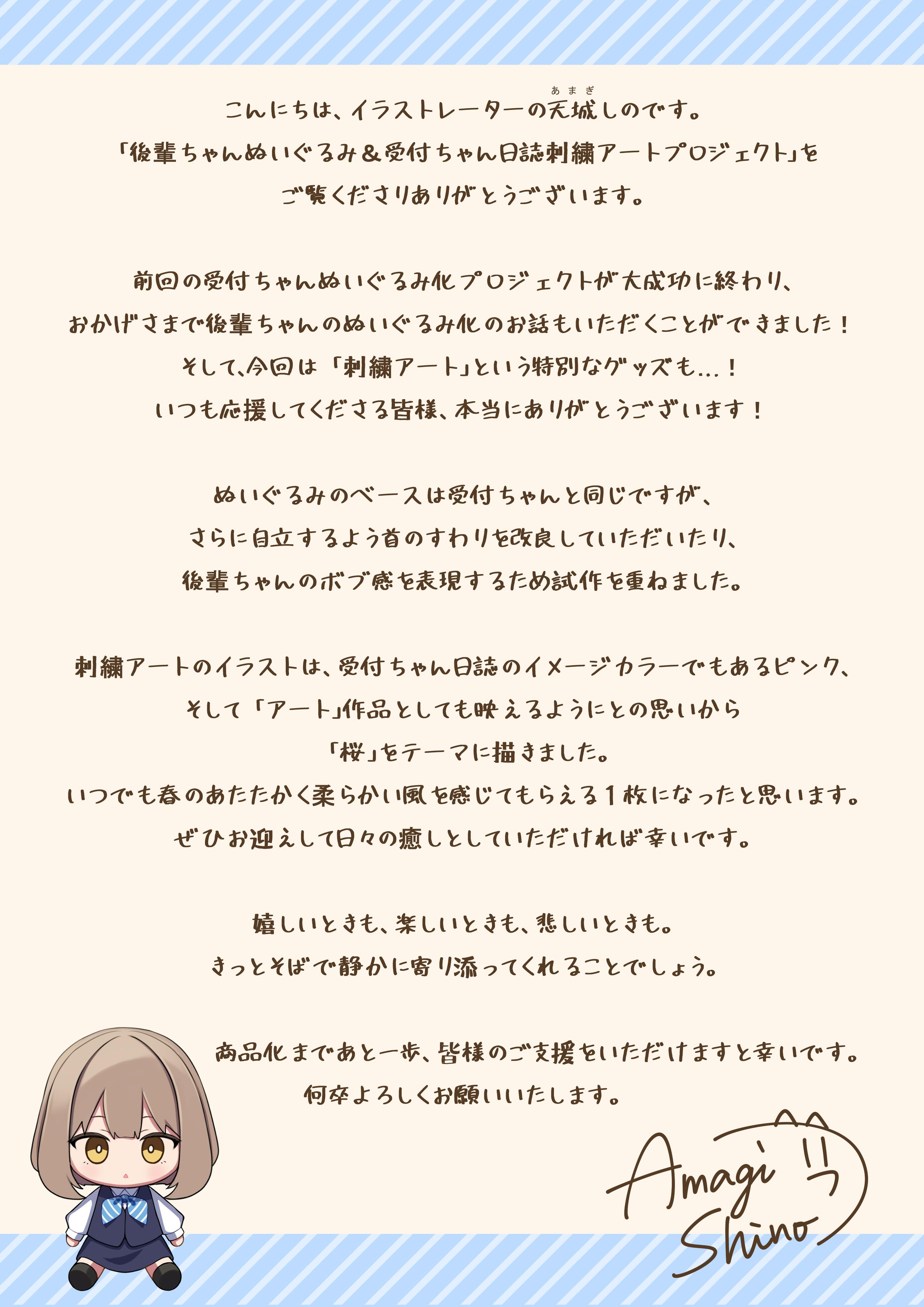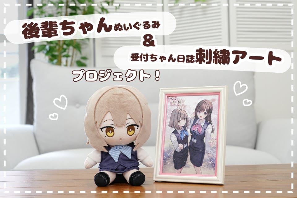 今回は、後輩ちゃんのぬいぐるみ&受付ちゃん日誌の刺繍アートに挑戦します!