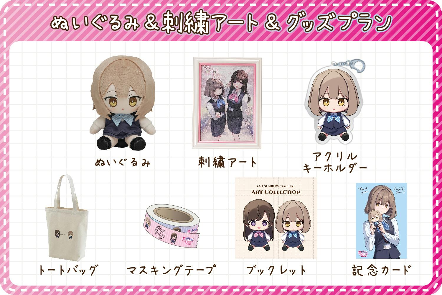 ぬいぐるみと刺繍アートとグッズがゲットできるプランです!