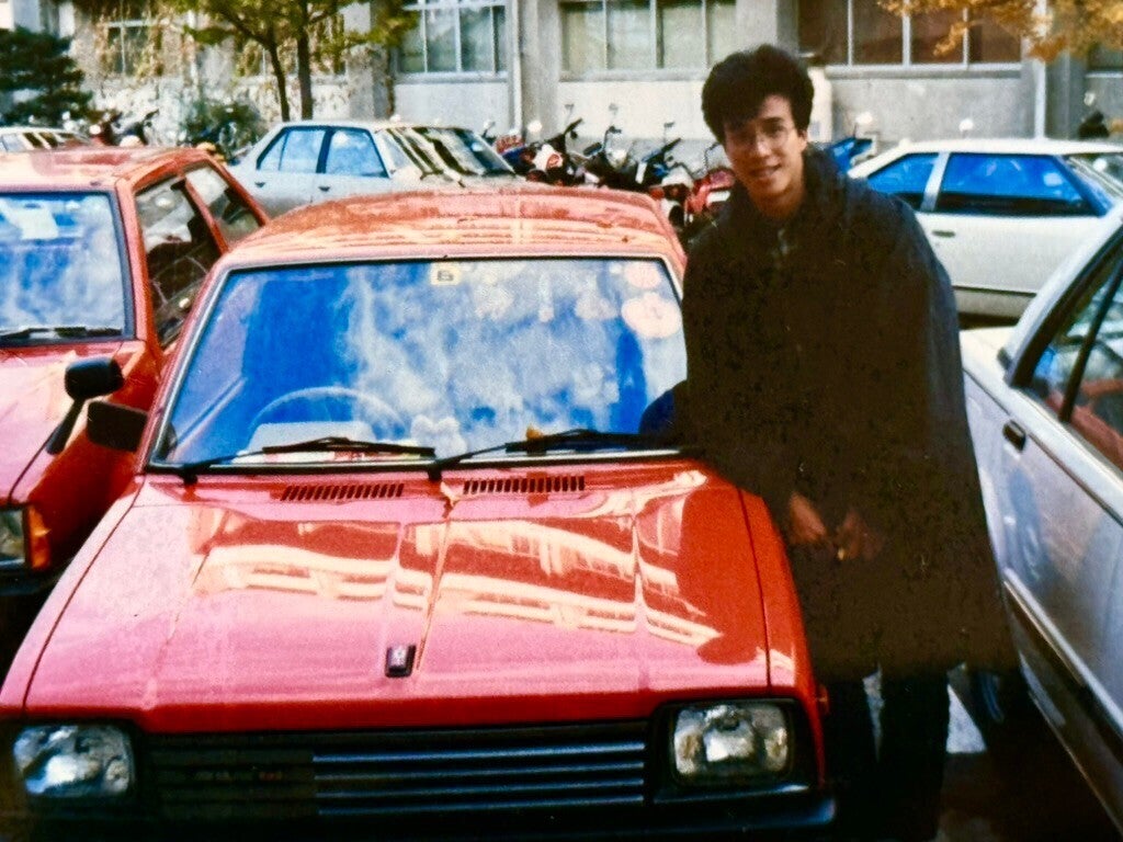 (学生時代の山﨑拓巳、4人の誰かは分かるかな?)