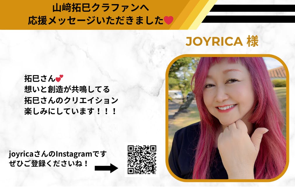 【谷村奈南】様、【大内笛跳】様、【joyrica】様から、山﨑拓巳のクラウドファンディングへ応援メッセージをいただきました!