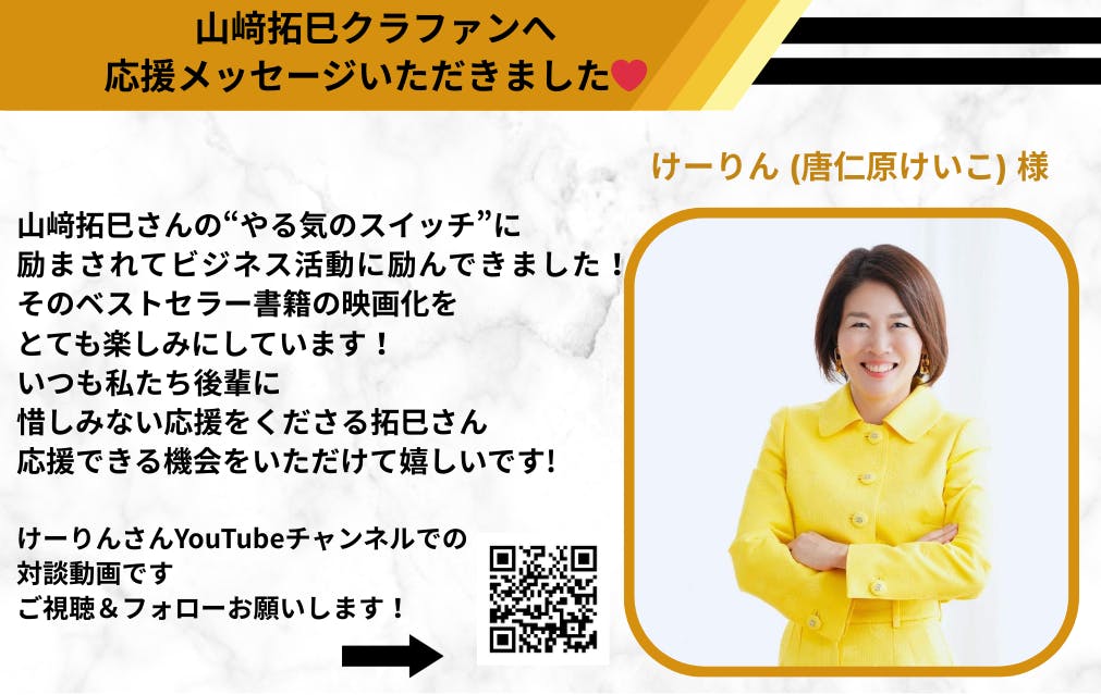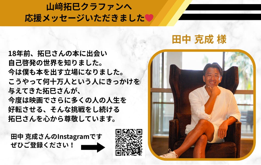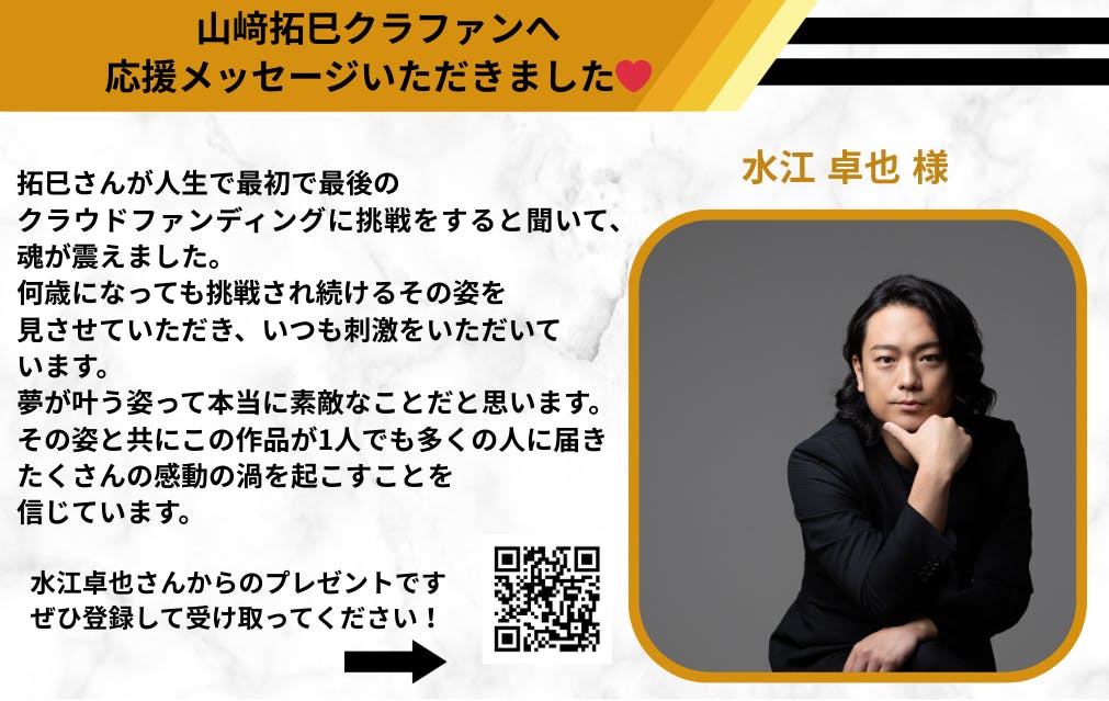 山﨑拓巳のクラウドファンディングへ応援メッセージをいただきました!