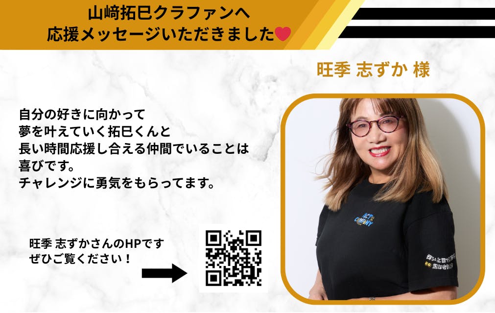 2026/03/16 12:08こんにちは!【YURI (結梨嘉望)】様、【名郷根修】様、【青木千草】様から、山﨑拓巳のクラウドファンディングへ応援メッセージをいただきました!本当にありがとうございますm(_ _)m【YURI (結梨嘉望)さん】YURI (結梨嘉望)さんのInstagramですぜひご登録ください!https://www.instagram.com/yuri.yuri1205?igsh=OGVvM3hrMjFuYm92【名郷根 修さん】名郷根 修さんのLINE公式アカウントですぜひご登録してください!https://lin.ee/ILRTVXg【青木千草さん】青木 千草さんのHPですぜひご覧ください!https://citta.jp/about/ もっと見る